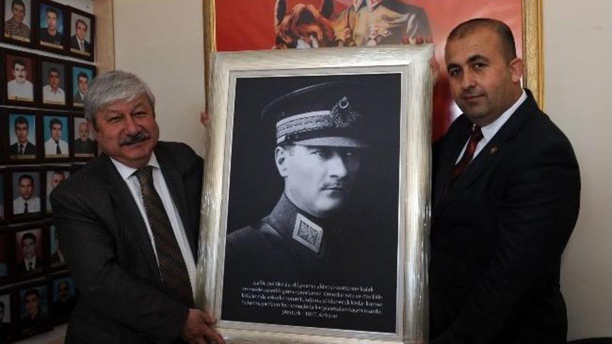 Ziyaretin sonunda derneğin anı defterini imzalayan Başkan Akaydın, Dernek Başkanı Ali Kuş’a Atatürk portresi hediye etti.