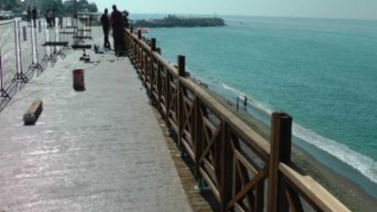 Akçakoca sahil düzenlemesi çalışması kapsamında Merkez Cami ve Akbey mevkii arasında kaldırım baskı beton çalışmaları tamamlanarak cilalama çalışmaları tamamlandı. Çalışmalar arasında özellikle ahşap korkuluklar yerleştirilmesine başlandı. Belediye ekipleri çalışmaların hızla devam ettirdiğini belirterek, Ramazan ayı sonuna kadar Çınar Caddesinde baskı beton çalışmaları da start alacağını belirttiler.