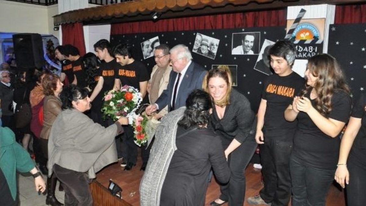 Gecenin sürprizi ise son olarak Akasya Durağı dizisinde ki komiser karakteri ile ekranlara gelen ünlü tiyatro sanatçısı Tevfik Yapıcı’nın da oyunu izlemek için salona gelmesi oldu. Oyun başlamadan önce kısa bir konuşma yapan Belediyesi Adab-ı Makara Tiyatrosu Yönetmeni Hande Totu Yüksel, oyunlarını ilk kez izleyici ile buluşturmanın heyecanını yaşadıklarını belirterek, tiyatronun hayata geçmesinde desteklerini esirgemeyen Belediye Başkanı Cahit İnceoğlu’na teşekkür etti. Ardından, tanınmış tiyatro sanatçılarının Akçay Beldesi’nde tiyatro kurulması ile ilgili görüşlerini açıkladıkları slayt gösterisi sunuldu. Senaristliğini ve yönetmenliğini Hande Totu Yüksel’in yaptığı Adab-ı Makara oyununda toplam 13 oyuncu rol aldı. İki perde olarak sahnelene güldürü oyununda insanoğlunun doğuşundan bu günlere gelişi eğlenceli bir bakış açısı ile sunuldu. Oyun izleyicileri kahkahalara boğarken, zaman zamanda ince göndermeleri ile düşündürdü. Oyunun sonunda tüm tiyatro ekibine teşekkür eden Akçay Belediye Başkanı Cahit İnceoğlu; “Belediyelerin bir yasal görevleri birde yaşamsal görevleri vardır. Yasal görevlerimiz olan altyapı, temizlik gibi hizmetleri başarılı bir şekilde devam ettiriyoruz. Yaşamsal görevlerimiz ise Belediye Kültür hizmetleri olarak sürüyor. Kendi bünyemizden bir tiyatronun kurulması ve beldemizin insanları tarafından hazırlanması ve sizlere sunulmasına destek olmak bizim yaşamsal görevlerimizden birisidir. Bu oyunun hazırlanmasında emeği geçen başta yönetmenimiz Hande Totu Yüksel olmak üzere tüm ekibimize, bugün aramızda olan değerli tiyatro sanatçımız Tevfik Yapıcı’ya ve bu akşam oyunu izlemek üzere salonu dolduran sizlere çok teşekkür ediyorum” dedi. Başkan İnceoğlu, gecenin anısına Yönetmen Hande Totu Yüksel’e bir plaket verdi.(BT)