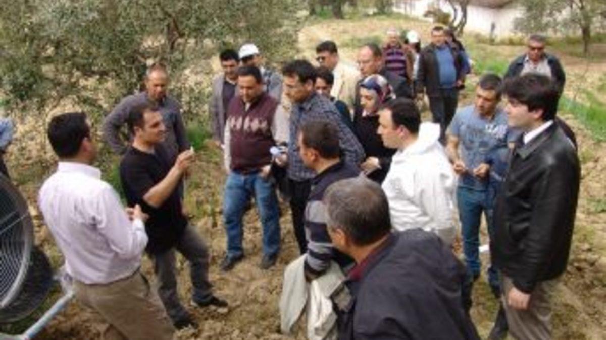 Teorik eğitimden sonra Ballıca beldesi çiftçilerinden Mehmet Bunar’a ait işletmeye gidildi. Ballıcalı diğer bazı çiftçilerin de takip ettiği uygulamalı eğitime, bitki koruma ürününün hazırlanmasıyla başlanıp ilaçlama makinesinin basınç ve kalibrasyon ayarlarının kontrolu yapıldıktan sonra zeytinlikte ilaçlamayla devam edildi. Uygulamadan hemen önce ilaçlı suyun temas yoğunluğunu belirlemek amacıyla ağaçlara “duyarlı kâğıtlar” asıldı. İlaçlamadan sonra bu kâğıtlar kontrol edilerek, uygulamanın etkisi değerlendirildi.