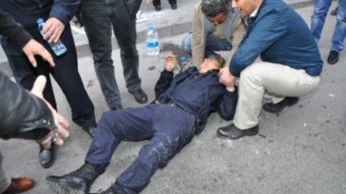 Aksaray’da dün Halkların Demokratik Partisi (HDP) İl Başkanlığının açılışında Eş Genel Başkan Sebahat Tuncel’in de katıldığı törende yaşanan gerginlik, bugün de devam etti. Parti tabelasının indirilmesini isteyen gruba polis müdahale etti.Bugün parti binasının bulunduğu sokakta toplanan kalabalık, polis barikatını aşarak binaya girmek istedi. Grup barikata yüklenince polis biber gazı ve cop kullanarak kalabalığa müdahale etti. Olayda namaz için yakındaki camiye gelen bir kişi de kafasına isabet eden cisimden, biri kadın 2 polis memuru da arbedede yaralandı. Olay yerine gelen ambulanslar, yaralıları hastaneye kaldırıldı. Sıkılan gazdan etkilenen bazı göstericiler de fenalaştı.Gözaltına alınanlar olurken, bölgede kalabalığın bekleyişi sürüyor.