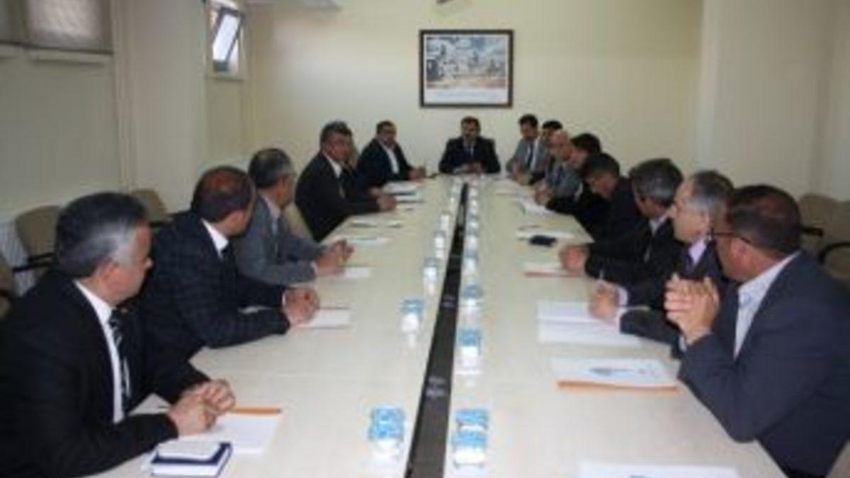Aksaray’da Tarımsal Kuraklık İl Kriz Merkezi tarafından "Kuraklık Eylem Planı" toplantısı yapıldı.Gıda, Tarım ve Hayvancılık İl Müdürlüğü Toplantı Salonu’nda gerçekleştirilen toplantıya Vali Yardımcısı Tolga Polat başkanlık yaptı. Toplantıya, Aksaray Üniversitesi’nden Öğretim Üyesi Prof. Dr. Mustafa Afşin, İl Özel İdaresi Genel Sekreter Yardımcısı M.Çapan Altındal, İl İdari Kurul Müdürü Hasan Altın, Gıda ,Tarım ve Hayvancılık İl Müdürü Bestami Zabun, Orman İşletme Müdürü İsmail Gürsoy, İl Sağlık Müdürü Akın Südemen, Çevre ve Şehircilik İl Müdürü Hüsnü Yıldız, DSİ 44. Şube Müdürü Vahdettin Bozkurt, ilçe belediye başkanları, sulama birlik başkanları, ziraat odası, ziraat mühendisleri odası temsilcileri de katıldı.Vali Yardımcısı Tolga Polat, 2014 yılı Ocak, Şubat ve Mart aylarında Aksaray’a düşen yağış miktarının yetersiz olması sebebiyle ortaya çıkması muhtemel kuraklık riskine karşı neler yapılabileceğini belirlemek amacıyla bu toplantıyı yaptıklarını söyledi. Polat, “Kuraklığın bu şekilde devam etmesi durumunda ilimizin sulama imkanı olmayan arazilerinde hasat yapma imkanı bile olmayabilir” dedi.Gıda, Tarım ve Hayvancılık İl Müdürü Bestami Zabun ise, İl Müdürlüğü olarak, il genelinde basınçlı sulama ile ilgili eğitimlere devam edildiğini ve basınçlı sulama yapmak isteyen çiftçilere yüzde 50 kırsal kalkınma desteği sağlandığını belirtti. Zabun, "2012-2013 yıllarında TKDK ve Ziraat Odası ile birlikte çiftçi eğitim kursları ile tıbbi aromatik bitkiler ekiminin yaygınlaştırılması amaçlanmıştır. Böylelikle kurak alanlarda yetişebilen aspir bitkisinin üretiminin yaygınlaştırılması hedeflenmiştir. Ayrıca diğer eğitim çalışmalarımız kapsamında, çiftçilerimizin kuraklığa dayanıklı ve sertifikalı arpa, buğday tohumu kullanmaları teşvik edilmiştir” dedi.Diğer katılımcılarında konu ile ilgili görüşlerini ifade etmelerinin ardından “Kuraklık Eylem Planı” yazılı bir rapor haline getirildi.