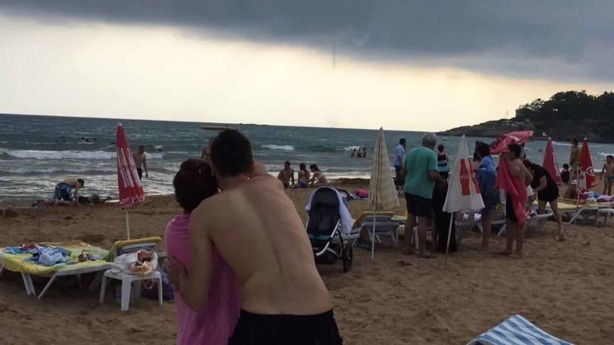 Antalya’nın Alanya ilçesi İncekjum Plajı’nda çıkan hortum 5 dakika sürdü.Antalya’nın Alanya ilçesi İncekum Plajı’nda saat 17.30 sıralarında kıyıdan yaklaşık olarak 300 metre açıkta hortum oluştu. Yaklaşık 5 dakika süren hortum sahilde bulunanlar tarafından cep telefonlarıyla görüntülendi. Çıkan hortumun ardından sahilde bulunan vatandaşlardan bazıları, selfie çekerken, bazıları resim çektirdi bazıları da panikleyerek sahilden uzaklaştı. Oluşan hortum kıyıya gelmeden gözden kayboldu.
