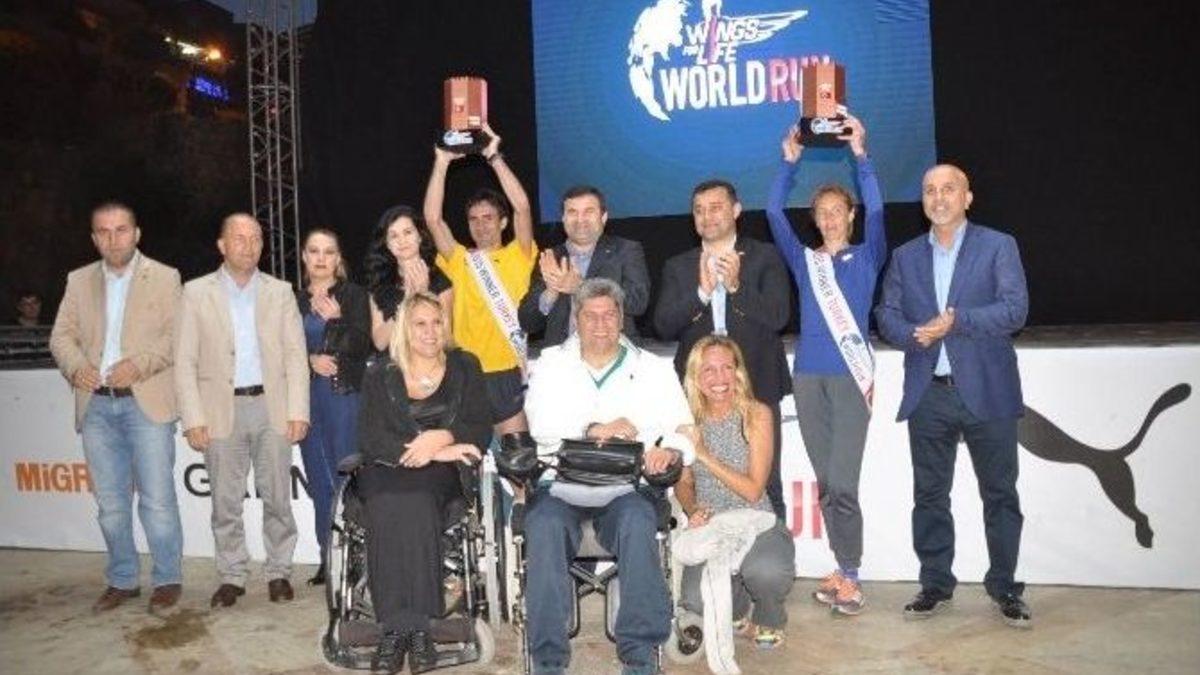 Omurilik felçlileri yararına 32 ülkenin 35 kentinde aynı anda düzenlenen Wings for Life World Run koşusunun Türkiye ayağını erkeklerde İspanyol atlet Jose Antonio Santos, bayanlarda ise Moldovalı atlet Svetlana Shepeleva kazandı.Tüm dünyada aynı anda başlayan Wings for Life World Run koşusunun Türkiye etabı Antalya’nın Alanya ilçesinde gerçekleştirildi. Yerel saatle 14.00’te başlayan koşuyu erkeklerde İspanyol atlet Jose Antonio Santos 68,4 kilometreyle, bayanlarda ise Moldovalı atlet Svetlana Shepeleva 50,3 kilometrelik skorla kazandı.Koşunun tamamlanmasıyla rıhtım meydanında yapılan ödül töreninde, bayan atlet Svetlana Shepeleva’a ödülünü Alanya Kaymakamı Hasan Tanrısever ile Türkiye Atletizm Federasyonu Yönetim Kurulu Üyesi ve Alanyaspor Başkanı Hasan Çavuşoğlu verdi. Erkeklerde birinciliği kazanan İspanyol Jose Antonio Santos’un ödülünü ise Alanya Belediye Başkanı Adem Murat Yücel verdi.Omurilik araştırmalarına destek için organize Wings For Life Vakfı’nın organize ettiği yarışta geçen yıl 3,6 milyon dolar yardım toplanmıştı.