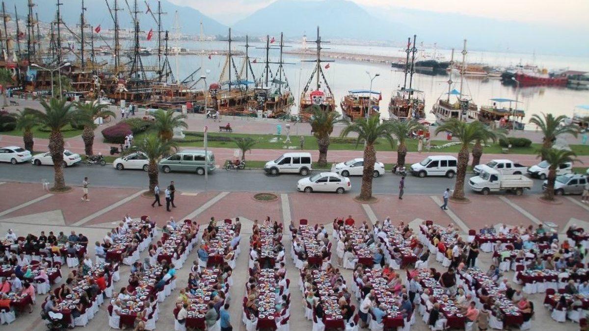 Antalya’nın Alanya Müftülüğü tarafından Alanya Turistik İşletmeciler Derneği’nin (ALTİD) katkılarıyla bölgede yaşayan yerleşik yabancılara ve farklı inançlardan din adamlarına iftar verildi.Alanya’da mülk satın alarak yaşamaya başlayan farklı ülke vatandaşlarına Alanya Müftülüğü tarafından ve ALTİD’in katkılarıyla iftar verildi. Farklı inançlardan din adamlarının da katıldığı İskele Şelale Meydanı’nda verilen iftara Alanya Belediye Başkanı Adem Murat Yücel, Antalya Müftüsü Osman Artan, Alanya Müftüsü Mustafa Topal, ALTİD Başkan Yardımcısı Mehmet Dahaoğlu, Alanya Ticaret ve Sanayi Odası (ALTSO) Başkanı Mehmet Şahin, Alanya Emniyet Müdürü Ömür Saka ve yaklaşık 600 davetli katıldı.skele meydanında düzenlenen ve ilçede yaşayan yabancı katıldığı iftar programına İl Müftüsü Osman Artan, Alanya Ticaret ve Sanayi Odası Başkanı Mehmet Şahin, Alanya Yabancılar Meclisi Başkanı Abdullah Karaoğlu, Türk Alman Dostluk Derneği Başkanı Fahri Yiğit ile diğer yabancı dernek başkanları katıldı.İftarda İl Müftüsü Osman Artan, yerleşik yabancılarla bir arada bulunmaktan mutlu olduklarını söyledi.Alanya Müftüsü Mustafa Topal ise düzenledikleri iftar sofrasıyla ramazan ayının hoşgörüsünü sergilediklerini belirtti. Alanya’da yaşayan yerleşik komşularla yapılan bu güzel paylaşımları dünyaya göstermek istediklerini kaydeden Topal, "Alanyamız huzur adası. İnançların problemsiz yaşanabildiği, birliktelikten mutluluk duyan bir ilçe. Penceremizdeki mutluluğu dünyaya da aksettirmek istiyoruz" dedi.