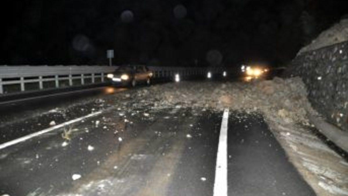 Kamyon sürücüsü Mahmut Çolak ise, Virajda fark edemedim dağ kaymış lastik patladı. Burada kaldık. Yolda bu kaymalar sürekli oluyor. Buna bir önlem alsalar az kalsın canımızdan oluyorduk.” dedi.