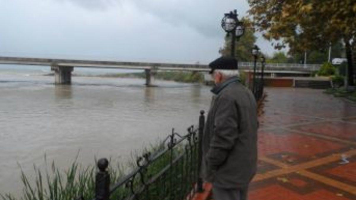 Kentte dünden beri devam eden sağanağın yanı sıra fırtına nedeniyle, denize döküldüğü bölümü molozlarla kapanan Alaplı Çayı’nın su seviyesi yaklaşık 10 metre yükseldi.