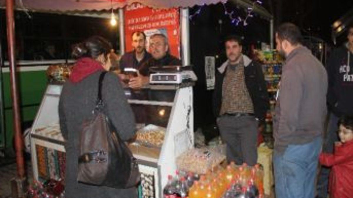 İlçede kuruyemiş satan esnaflardan Tuncay Çil, yılbaşı gecesi dolayısıyla kuruyemiş satışlarında artış yaşandığını söyledi.