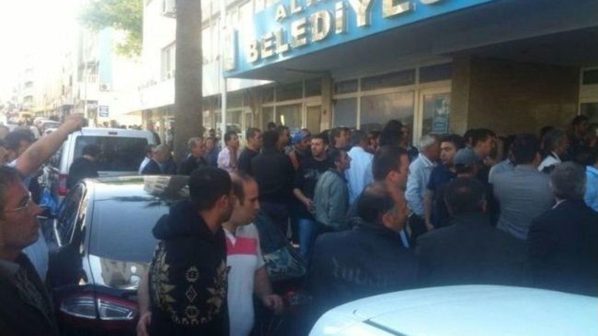 Aliağa Belediyesi'nde taşeron işçiler, Aliağa Belediye Başkanı Serkan Acar'ın talimatıyla işten çıkarıldıkları iddiasıyla belediye önünde...