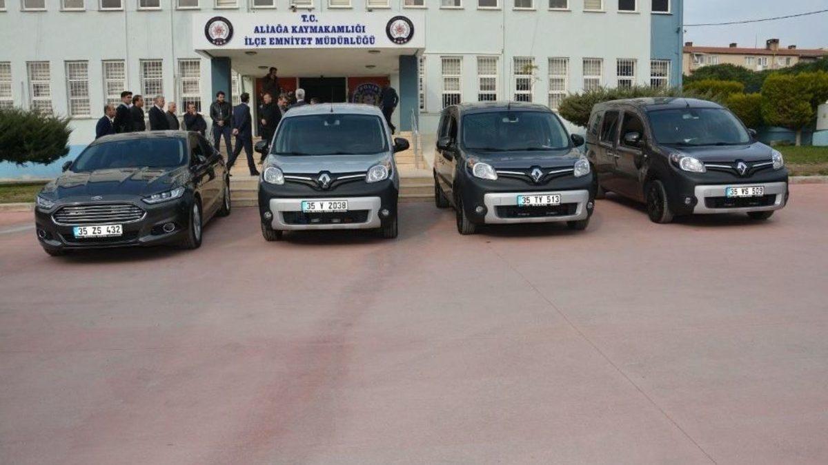 İzmir’in Aliağa ilçesinde faaliyet gösteren işletmeler ve kuruluşlar tarafından, Aliağa İlçe Emniyet Müdürlüğü’nün daha etkin ve verimli hizmet verebilmesi adına, emniyet müdürlüğüne 4 yeni araç bağışlandı.Aliağa’da faaliyet gösteren işletmeler ve kuruluşlar tarafından hibe edilen 4 yeni araç, Aliağa İlçe Emniyet Müdürlüğü bünyesinde kullanılmak üzere düzenlenen tören ile hizmete sunuldu. İlçe Emniyet Müdürlüğü bahçesinde düzenlenen törene, Aliağa Kaymakamı Dr. Bayram Yılmaz, Aliağa Müftüsü Süleyman Demiryürek ve bağışta bulunan kuruluşların yetkilileri katıldı.Törende konuşan Aliağa Kaymakamı Dr. Bayram Yılmaz, araç takviyeleriyle hizmet kalitesinin artacağını vurgulayarak, “Devletimizin imkanları haricinde, vatandaşlarımızın ve işletmelerimizin kolluk kuvvetlerine bağışta bulunmaları önemlidir. Yeni araçlar ile polisimiz 24 saat ve 365 gün vatandaşa daha verimli ve seri hizmet verebileceği bir gerçektir” dedi. Aliağa İlçe Emniyet Müdürü Yasin Uğurtaş ise Aliağa halkının ve işletmelerinin desteği ile Aliağa polisinin hizmet standartlarının üst düzeyde olduğunu, vatandaşların desteği ile Aliağa da huzur düzeyini en iyi duruma getirme çabalarının, tüm personelin özverili çalışması ile neticeye ulaşacağına inancının tam olduğunu söyledi.Konuşmaları ardından Aliağa İlçe Emniyet Müdürlüğü tarafından personelin görevlerinde başarılı olmaları ve kazasız görev yapmaları için kendi imkanları ile 4 adet kurban kesilerek ihtiyaç sahiplerine dağıtımı yapıldı.