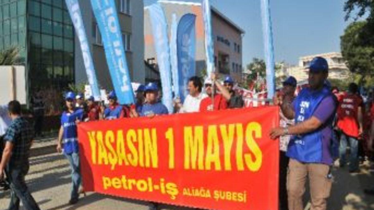 Aliağa Petrol İş Sendikası önünde bir araya gelen işçiler, sendikalar, siyasi partiler ve sivil toplum kuruluşları Atatürk Caddesi üzerinden başlatılan yürüyüşe vatandaşlarda büyük destek verdi. İstiklal caddesine geçen işçiler Demokrasi Meydanı’na kadar Hükümet, ABD ve taşeron düzeni aleyhinde slogan attı.