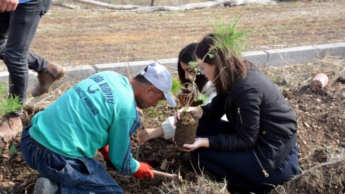 İzmir’in Aliağa ilçesinde, belediye ekipleri ve Fen Bilimleri Okullarında eğitim gören öğrenciler birlikte ağaçlandırma çalışması yaptı.