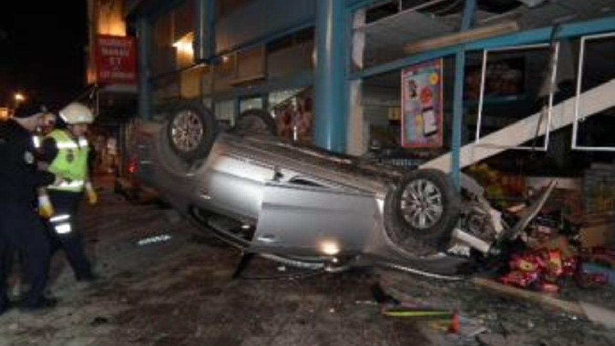 Sakarya’nın Adapazarı ilçesinde alkollü bir sürücü, otomobiliyle markete daldı. Kazada yaralanan olmazken, büyük çapta maddi hasar meydana geldi.