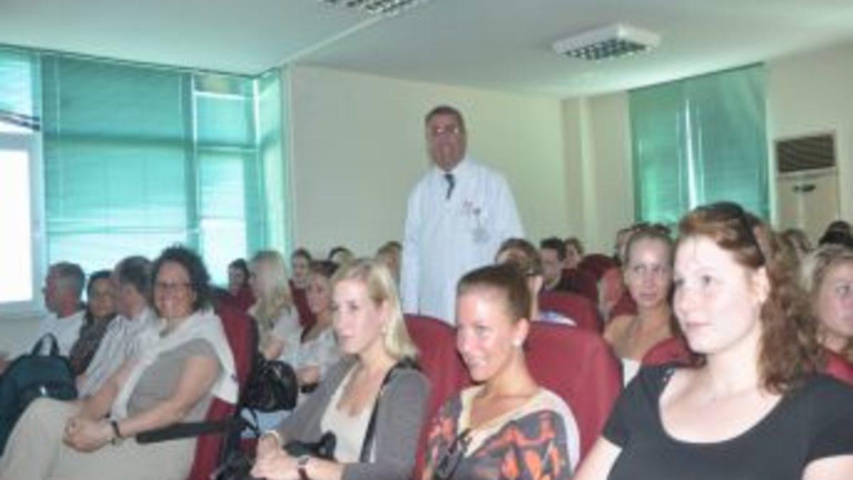 Alanya Devlet Hastanesi'ni ziyaret eden Alman hemşire adayları, brifing salonunda Başhekim İsmail Başaran tarafından bilgilendirildi. Başhekim Başaran, Almanca yaptığı konuşmasında hastane ve sağlık sistemi hakkında bilgi verdi.