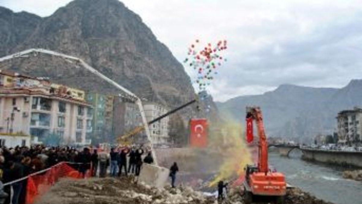 Amasya’da Ferhat Köprüsü’nün temeli atıldı.İstasyon Caddesi ile eski hal mevkisi arasındaki yaya ve taşıt trafiğini sağlayacak köprünün temel atma törenine Amasya Valisi İbrahim Halil Çomaktekin, AK Parti Amasya Milletvekili Avni Erdemir, Amasya Belediye Başkanı Cafer Özdemir, AK Parti Amasya İl Başkanı Osman Faik Salman, diğer yetkililer ve vatandaşlar katıldı.Belediye Başkanı Cafer Özdemir, içme suyu ile kanalizasyon hatlarının da geçeceği köprünün kendi dönemlerindeki üçüncü köprü, toplamda ise Yeşilırmak üzerindeki 12. köprü olacağını söyledi.“Bu şehirde güzel şeyler olacak” sloganıyla yola çıktıkları Amasya’ya 10 milyon liralık sebze hali, modern sebze pazarı, katı atık bertaraf tesisi, Ferhat ile Şirin Müzesi’ni kazandırdıklarını, 8 milyon liralık kültür merkezi, altı otopark olan meydan projesi, kapalı yüzme havuzu, spor salonu ve otobüs terminali inşaatlarının da devam ettiğini anımsatan Başkan Özdemir, “Amasyamızın yıllardır ihtiyacı olduğuna inandığımız büyük projeleri yapma fırsatı yakaladık. İnşallah önümüzdeki seçimlerde Rabbim görevi bize nasip ederse bunları da hızlı bir şekilde sürdürürüz” diye konuştu.Özdemir, 250 gün içerisinde tamamlanması hedeflenen köprünün projelendirdikleri Ferhat Tüneli ile şehir merkezini de birbirine bağlayacağını kaydetti.Müftü İsmail İpek’ın okuduğu duanın ardından Özdemir ile beraberindekilerin butona basmasıyla köprünün temeline harç atıldı.