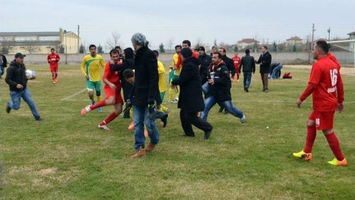Konya’da komşu ilçe takımları arasında oynanan maçta 3 oyuncu sakatlanırken çıkan kavgada 2 oyuncu darp edildi.Konya 1. Amatör Küme B Grubu 6. hafta maçında komşu Cihanbeyli ile Kulu ilçelerinin takımları, Cihanbeyli ilçe stadında karşılaştı. Gergin başlayan mücadelede ev sahibi takım ilk yarının bitiminde bulduğu golle 1-0 öne geçti. Maç sırasında başlayan gerginlik oyunun bitimine doğru daha da sertleşti. Kulu Belediyesporlu 3 futbolcu aldıkları tekme darbeleriyle sakatlandı. Sahada sağlık görevlisi ve ambulans olmadığı için sakatlanan futbolcular karga tulumba yeşil zeminin dışına taşındı.Ev sahibi takımdan bir oyuncunun kırmızı kart gördüğü maçın bitiş düdüğüyle birlikte saha içi biranda karıştı. Yeterli güvenlik önlemi alınmadığı için büyüyen olaylar sırasında sahaya giren seyirciler güçlükle dışarı çıkarıldı. Kulu Belediyesporlu futbolcular takım otobüsleri ile 50 kilometre ilerideki ilçelerine gelerek burada hastanede tedavi altına alındı. Yapılan ilk muayenede futbolculardan İsmail Samancı’nın kaburgası ve Hakkı Atçeken’in ayağında kırık olduğu, Muhammed Kavaklı’nın da maç sırasında gözünün aldığı darbe ile sakatlandığı belirlendi. Salim Kökçek ve Yasin Kurt’un darptan dolayı vücudunda yaralanma olduğu öğrenildi.Kulu Belediyespor Teknik Direktörü Mehmet Adıgüzel, maçta görev alan 4 polis memurunun kendilerini korumada yetersiz kaldığını ve resmen dayak yediklerini iddia etti. Adıgüzel, sert geçen maç sırasında tekmelenen futbolcuların maç sonrasında da tekmelerle dövüldüğünü ileri sürdü.