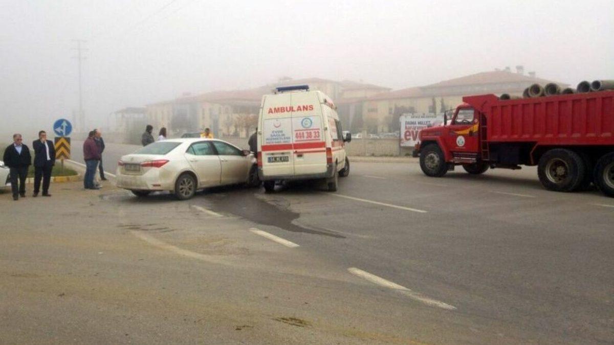 Sakarya’da ambulans ile otomobilin çarpışması sonucu meydana gelen kazada 1 kişi yaralandı.Kaza Sakarya’nın Akyazı ilçesinde meydana geldi. Edinilen bilgilere göre, Akyazı D-140 Karayolu Kuzuluk-Adapazarı istikametinde gitmekte olan 34 NU 0051 plakalı otomobil sürücüsü yoğun sis nedeniyle Akyazı Devlet Hastanesi kavşağından çıkmakta olan Cevat E. idaresindeki 54 NE 810 plakalı ambulansa çarptı. Çarpmanın etkisiyle 34 NU 0051 plakalı otomobil sürücüsü yaralanırken, her iki araçta da maddi hasar meydana geldi. Polis kazayla ilgili soruşturma başlattı.