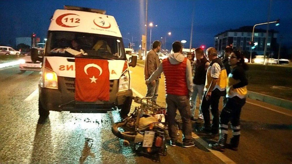 Balıkesir’in Edremit ilçesinde ambulansın çarptığı motosiklet sürücüsü ağır yaralandı.Alınan bilgiye göre kaza, akşam saatlerinde ilçe girişi Bademli Kavşağı’nda meydana geldi. Sürücüsü isimi öğrenilemeyen 10 DDA 26 plakalı ambulans, kavşaktan geçmeye çalışan Remzi Duman idaresindeki 10 H 8354 plakalı motosiklete çarptı. Yaklaşık 20 metre sürüklenen ve ağır yaralanan motosiklet sürücüsü, olay yerine gelen başka ambulans ile hastaneye kaldırıldı. Kazayla ilgili soruşturma sürüyor.