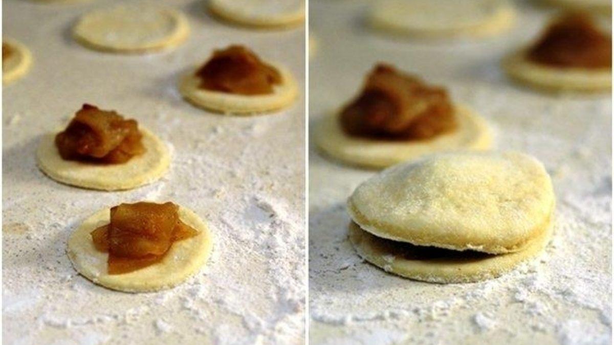 Yapılışı: Elmaları rendeleyip diğer malzemeleri karıştırarak elmalı içi hazırlayın. Milföy hamurlarını üçgen kesin. Üçgenlerin uçlarına bir tatlı kaşığı elmalı içten koyup uçları açık kalacak şekilde sigara böreği gibi sarın. 180 C fırında pembeleşene kadar pişirin. Soğuduktan sonra pudra şekeri serpin.