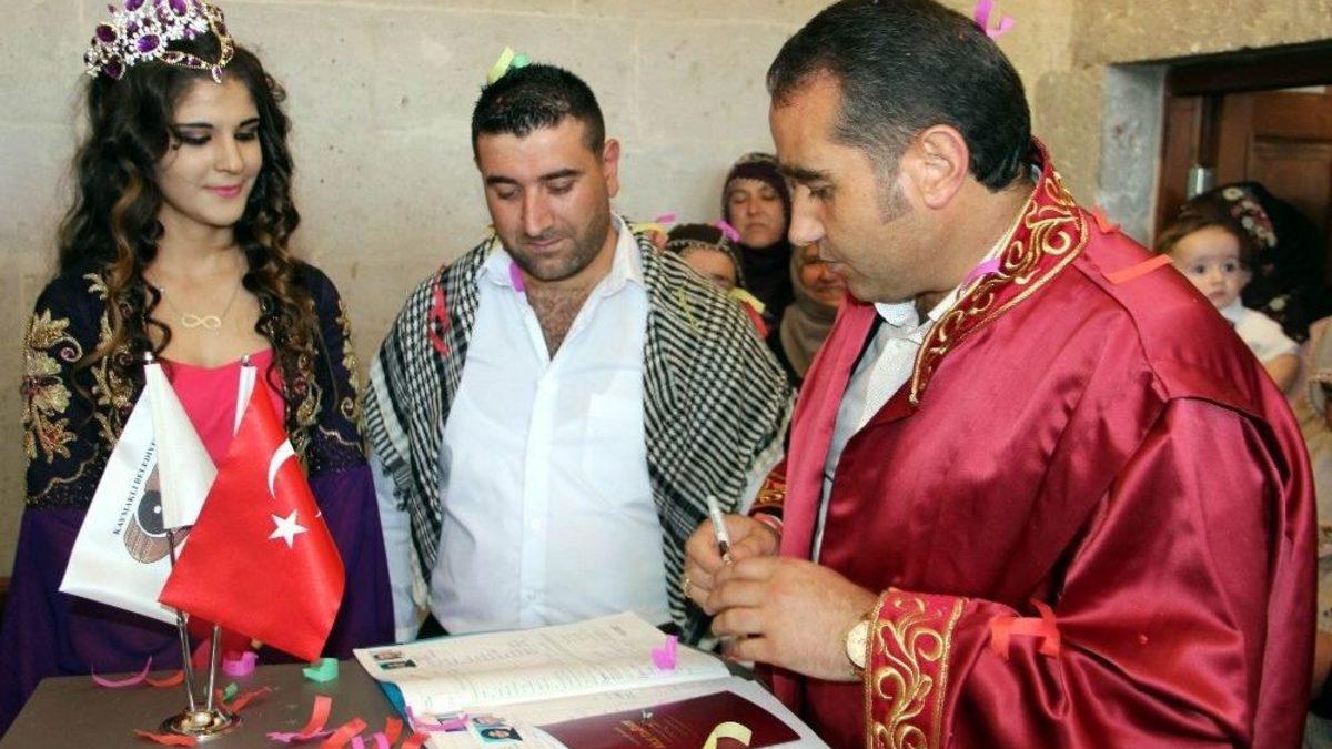 Nevşehir’in merkez ilçeye bağlı Kaymaklı Kasabasında bulunan 105 yıllık tarihi “Papaz Konağı” ilk kez bir nikah törenine şahit oldu.Kaymaklı Kasabasında bulunan ve 1912 yılında Ortodokslar tarafından yapılan tarihi Papaz Konağı’nda Kaymaklı Belediyesi tarafından yapılan restorasyon sonrasında ilk kez bir nikah kıyıldı. Tarihi 105 yıllık konakta ilk defa nikah kıydıran çiftin mutluluğu gözlerinden okunurken, genç çift, "Burada yaşanan köklü aşklar gibi bizim de aşkımız olsun diye burada nikah kıydırmak istedik" dedi.Damat Mustafa Kantürk, “Bu konağın köklü bir tarihi olduğu için bizimde köklü bir geçmişimiz evliliğimiz olsun istediğimiz için bu konakta nikah kıydırdık" diye konuştu. Gelin Büşra Çopur da yaptığı açıklamada, “Öncelikle burada nikah kıydırdığım için çok mutluyum. Belediye Başkanımıza teşekkür ediyorum. Burada yaşanan aşklar gibi köklü bir aşkımız olması için burada nikah kıydırdık” dedi.Kaymaklı Belediye Başkanı Halit Elma ise yaptığı açıklamada 1912 yılında yapılan bu tarihi konakta ilk kez bir genç çiftimiz dünya evine girdi dedi. Elma, “1912 yıllarında yapılan bu konağımızda ilk defa böyle bir genç çiftimiz dünya evine girdi. İnşallah mutlu olurlar. Bu konağın sevdaya dair geçmiş bir anısı da vardır. Daha sonra burada yan tarafta bulunan kilisede ki papazın bu konakta kalmasından dolayı ‘Papaz Konağı’ ismi verilmiş. Belediyemiz olarak daha sonra bu tarihi konağı restore ettirdik ve önümüzde ki günlerde hizmete açacağız. Buranın en büyük özlelliği ‘Papaz Evi’ olmasıdır. Tabi burada gençlerin bir aşk hikayesinin de olması en büyük özelliklerinden bir tanesidir” şeklinde konuştu.
