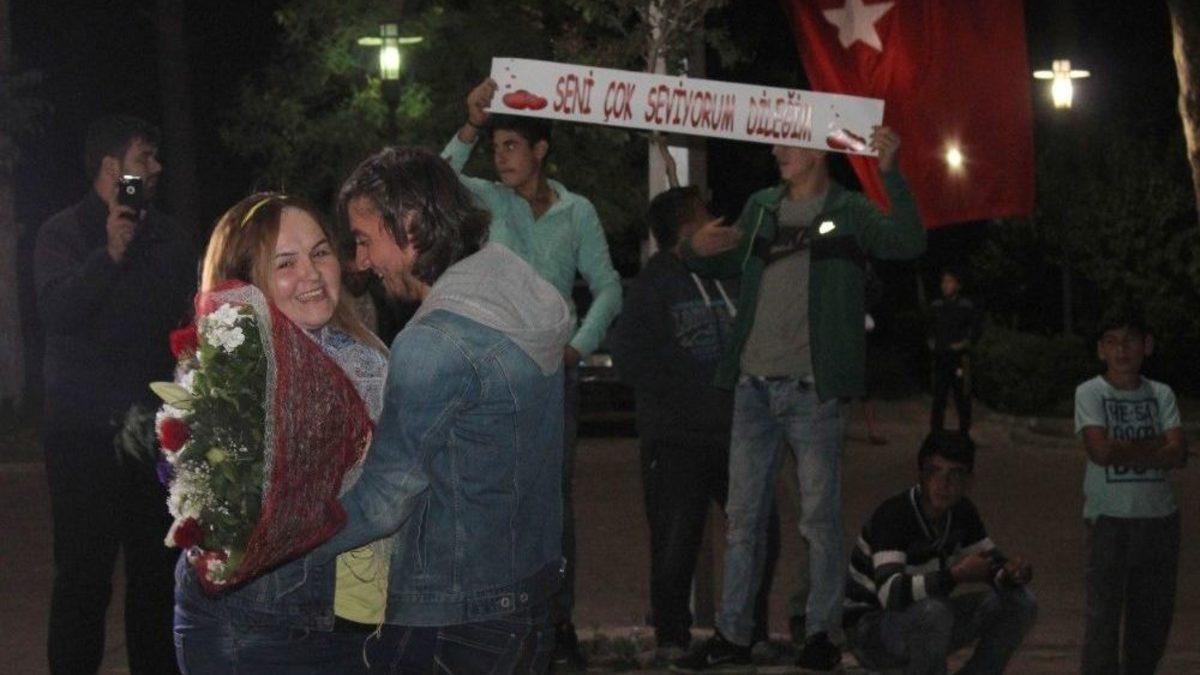 Manisa’nın Saruhanlı ilçesine bağlı Mütevelli Mahallesinde yaşayan Üzeyir Kösem, 13 yıllık hayat arkadaşı Dilek Kösem’e mahalle meydanında düğünleri aratmayacak evlilik yıldönümü partisi düzenleyerek büyük bir sürpriz yaptı.Mütevelli Mahallesinde ikamet eden evli ve iki çocuk babası Üzeyir Kösem, eşi Dilek Kösem’e evliliklerinin 13. yıldönümüne özel bir sürpriz yapmaya karar verdiğini belirtti. Bu kapsamda mahalle meydanına orkestra kurduklarını, dans edecekleri pistin çevresine mumlar yerleştirdiklerini, havai fişek gösterisinden konfetilere kadar her şeyi hazırladıklarını dile getiren Kösem, şunları anlattı:"30’a yakın arkadaşımın yardımıyla güzel bir organizasyon hazırladım. Daha sonra eve gidip, dolaşma bahanesiyle eşimi aracımla dışarıya çıkardım. Alana geldiğimizde eşim gördüğü manzara karşısında adeta şok oldu. Böyle bir sürpriz beklemiyordu. Daha sonra eşime bir buket çiçek takdim ettim ve ardından sevdiğimiz şarkılar eşliğinde dans ettik. Bu sırada havai fişekler ve konfetiler patlatıldı. Onun için ne yapsam azdır. Çocuklarımın annesi, onu çok ama çok seviyorum. Bizim için güzel bir anı oldu. Mutluluğumuz daim olur inşallah."Dilek Kösem ise hayatının en güzel anlarından birini yaşadığını ifade ederek, "Çok şaşırdım, çok mutlu oldum. Hiç böyle bir şey beklemiyordum. Eşime çok teşekkür ederim" dedi.