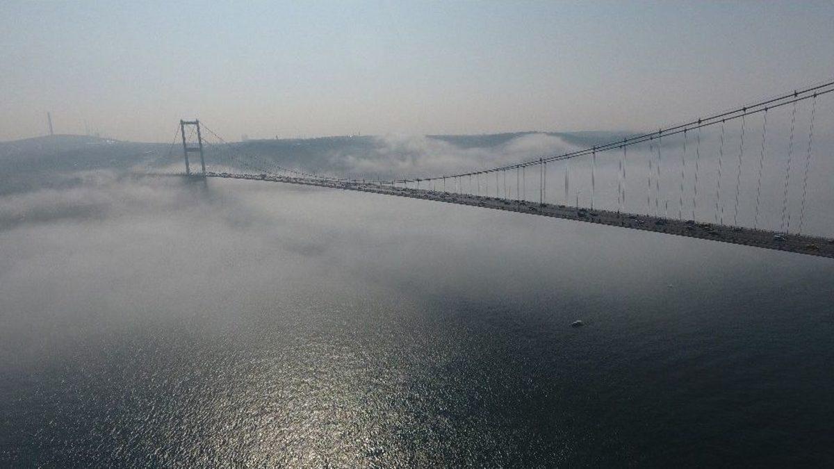 İstanbul’u etkisi altına alan yoğun sis 15 Temmuz Şehitler Köprüsü’nde kartpostallık görüntüler oluşturdu. İstanbul Boğazı’nı adeta örten sis havadan drone ile görüntülendi.İstanbul’da etkili olan yoğun sis hayatı olumsuz etkilerken, İstanbul Boğazı’nda karpostallık görüntüler oluşturdu. 15 Temmuz Şehitler Köprüsü’nde mest eden görüntüler oluşturan yoğun sis, havadan drone ile görüntülendi.Görüntülerde denizi örten sis nedeniyle arabalar bulutların üzerinden geçiyor gibi gözüküyor.
