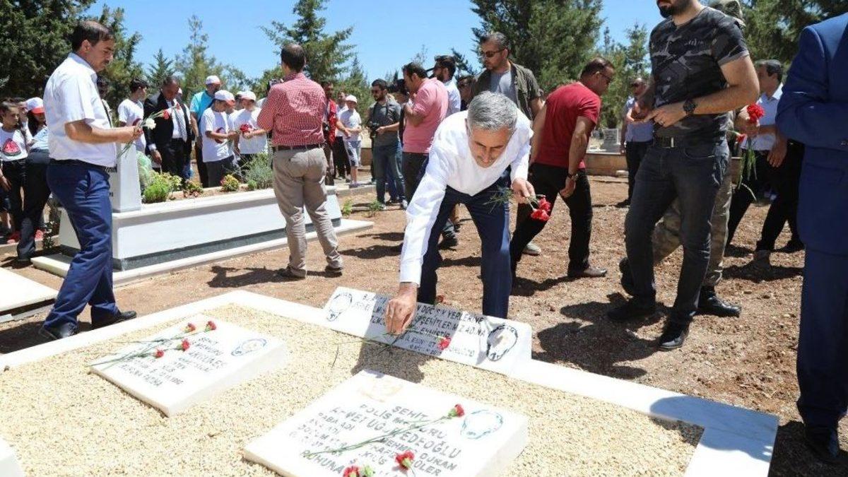 Kilis’te, 15 Temmuz Şehitleri Anma Demokrasi ve Milli Birlik Günü nedeniyle etkinlikler düzenleniyor.Sabah saatlerinde ilk etkinlik Kilis Şehitliğinde gerçekleştirildi. Burada çelenk sunumu saygı duruşu ve istiklal marşının okunmasından sonra Kuran-ı kerim tilaveti yapılarak şehitler için dua yapıldı.. Daha sonra protokol üyeleri şehit mezarlarına çelenk sunumu yapıldı. Beşveler Camiinde şehitler için mevlidi şerif okutulduktan sonra yemek ikramında bulunuldu. Etkinliğe Kilis Valisi Mehmet Tekinarslan, Kilis Belediye Başkanı Hasan Kara, Kilis milletvekilleri Reşit Polat, Mustafa Hilmi Dülger, daire amir ve müdürleri ile protokol üyeleri ve vatandaşlar katıldı.