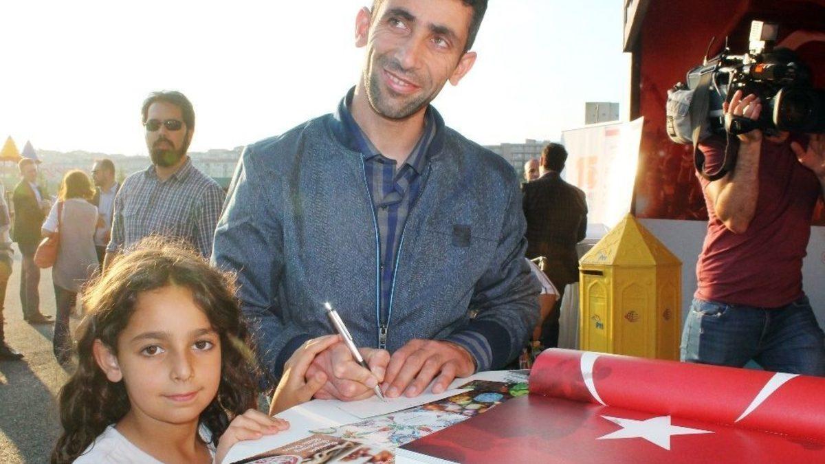 15 Temmuz Şehitler Köprüsü’ne olan sevgisi ve merakı üzerine babasının köprünün maketini yaptığı Yağmur Güder, 15 Temmuz Derneği ile birlikte şehit ailelerine bayram tebrik kartı gönderdi.15 Temmuz Derneği, PTT ile iş birliği yaparak 15 Temmuz hain darbe girişiminde kahramanca vatanı savunurken şehit olanların ailelerine Yenikapı etkinlik alanındaki standından Ramazan Bayramı tebrik kartı gönderiyor. Uygulamanın tanıtımı için 15 Temmuz Şehitler köprüsüne olan sevgisi ve merakı ile babasının köprünün maketini yaptığı Yağmur Güder ve babası standa geldi. Güder seçtiği 15 Temmuz şehidinin ailesine Ramazan Bayramı mesajını babası ile birlikte gönderdi. Yenikapı’da etkinlik alanında bulunan 15 Temmuz Derneği standında gelen vatandaşlar, ilk önce Ramazan Bayramı tebrik kartı göndermek istedikleri aileyi seçiyorlar. Ardından çeşitli desen ve motifler ile süslenmiş Ramazan Bayramı tebrik kartları seçiliyor. Son olarak hiçbir ücret ödemeden stantta bulunan posta kutusuna mesajların yazıldığı tebrik kartları atılıyor. Böylece vatanın bölünmez bütünlüğü için canlarını hiçe sayan kahraman 15 Temmuz şehitlerinin unutulmadığını ve Ramazan Bayramı’nda yalnız olmadıkları gösteriliyor.“Yaptığımız etkinliklerle şehit ailelerinin yalnız olmamasını sağlamaya çalışıyoruz”Yenikapı’da açıklamalarda bulunan 15 Temmuz Derneği Başkanı A. Tarık Şebik, “15 Temmuz şehitleri bizim emanetimiz ve o ruhu unutmayacağız. Dolayısıyla biz yaşarken, her anımızda, Ramazan Bayramı, kurban Bayramı, törenler gibi kendi hayatımızda yaşadıklarımız neyse bileceğiz ki şehitlerimizin aileleri bize emanettir. Bizde o manada onların yanında olacak ve kalplerine dokunacak her türlü işin içindeyiz. Standa koyduğumuz kitabımızda şehitlerimizin isimleri var. O isimleri burada bulunan kartpostallara yazıp şehit ailelerine bayram mesajı yolluyoruz. İstiyoruz ki Ramazan Bayramına kalktığı zaman şehit çocuğu kendi babasının olmadığını biliyor. Bizler yapacağımız her türlü etkinlikle onların yalnız olmamasını sağlamalıyız” dedi.“Buraya gelince şehitlerimizin anısından bayağı duygulandım”Kızına yaptığı 15 Temmuz Şehitler Köprüsü maketiyle gündeme gelen Aydın Güder, kızıyla birlikte Yenikapı’da bulunan 15 Temmuz Derneği standını gezdi. Kızıyla birlikte Ramazan Bayramı Tebrik Kartı gönderdikten sonra konuşan Aydın Güder, “Ben bizi burada ağırlayan İstanbul Büyükşehir Belediye Başkanına çok teşekkür ederim. Bugüne kadar yağmuru gezdirdim yarında köprülere gideceğiz. Bu konuda kızım adına çok sevindim. Daha sonra buraya geldiğim zaman şehitlerimizin anısından bayağı duygulandım. Bütün şehitlerimize Allah’tan rahmet diliyorum ve herkesin bayramını kutluyorum” diye konuştu.Ramazan Bayramı tebrik kartına vatandaşlardan yoğun ilgiRamazan Bayramı Tebrik Kartı göndermek için vatandaşlar 15 Temmuz Derneği standını ziyaret etti. 15 Temmuz kitabını inceleyen vatandaşlar, şehit ailelerine bayram tebrik kartı gönderdi. Ramazan Bayramı Tebrik Kartı gönderen Engelli Ümit Çağlayan, ”Şehitler bizim için vatan ve bayrak için şehit oldu. Keşke onlarla birlikte bende şehit olsaydım. Onlarla gurur duyuyorum. Mustafa Dilek ailesine bayram tebrik kartı gönderiyorum mutlu bayramlar” şeklinde konuştu.