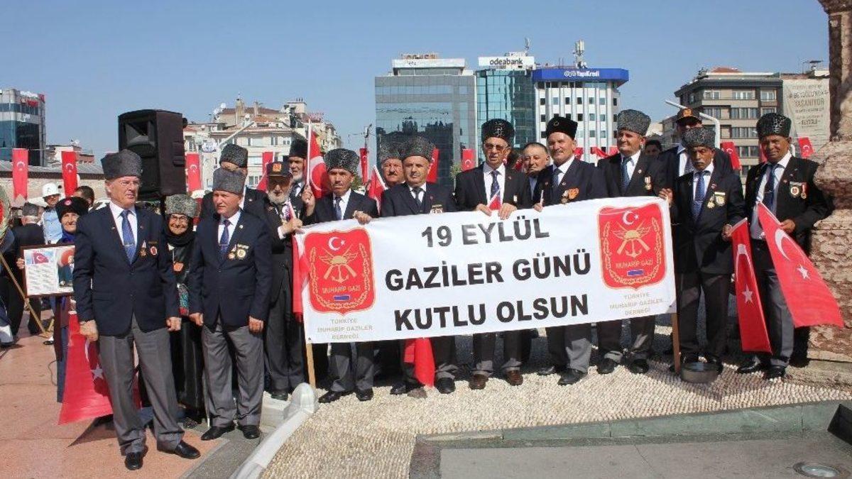 19 Eylül Gaziler Günü dolayısıyla Taksim Meydanı’nda harp malulü gaziler ve yakınlarının da katılımıyla tören düzenlenerek, Cumhuriyet Anıtına çelenk konuldu. Törende konuşan Muharip Gaziler Derneği İstanbul Şube Başkanı Gazi Ahmet Kendigel, "Gaziler Günü, 15 Temmuz hain darbe girişiminde vücutlarını siper eden tüm malul gazilerin şeref günüdür” dedi.19 Eylül Gaziler Günü programı kapsamında Taksim Meydanı’ndaki Cumhuriyet Anıtı’nda harp malulü gaziler ve yakınlarının da katıldığı tören düzenledi. Törene İstanbul Vali Yardımcısı Cemalettin Özdemir, İBB Genel Sekreter Yardımcısı Hüseyin Eren, 52. Motorlu Piyade Tümen Komutanı Tuğgeneral Özgür Tör, Türkiye Muharip Gaziler Derneği İstanbul Şubesi Başkanı Gazi Ahmet Kendigel ve çok sayıda gazi ile gazi yakını katıldı. Törende Cumhuriyet Anıtına çelenkler konulduktan sonra İstiklal Marşı okunarak saygı duruşunda bulunuldu."Gaziler günü hain darbe girişiminde vücutlarını siper eden tüm malul gazilerin şeref günüdür"Törende konuşan Muharip Gaziler Derneği İstanbul Şube Başkanı Gazi Ahmet Kendigel, “Gaziler günü Türk kahramanlığının en büyük Gazi Mustafa Kemal Atatürk’ün şahsında taşların kırıldığı bir gündür. 19 Eylül Gazi Günü bu toprakların vatan olmasında ve bekasında uğruna canlarını adayanların gurur, şerefle hatırladığı ve anıldığı bir gündür. Gaziler Günü Kurtuluş Savaşı’nda Kore’de Kıbrıs’ta savaşan muharip gaziler ile Türkiye Cumhuriyetinin rejimi, üniter yapısı ve toprak bütünlüğü uğrunda vatan hainlerinin terör örgütlerine karşı kahramanca mücadele eden asker, polis ve güvenlik korucuları, 15 Temmuz hain darbe girişiminde vücutlarını siper eden tüm malul gazilerin şeref günüdür” dedi.Konuşmaların ardından tören son buldu.