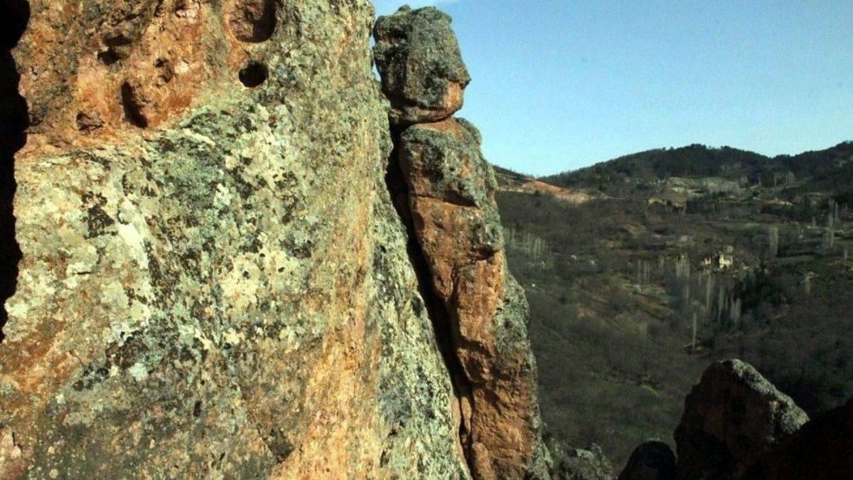 Kütahya’nın Hisarcık ilçesine bağlı Kutlubeyler köyündeki devasa kayalar, 2 bin yıllık gizemli tarihiyle turizme kazandırılmayı bekliyor.Hisarcık ilçesine 11 kilometre mesafede olan Kutlubeyler köyünün hemen karşısında yer alan ve halk arasında ’gelin kayaları’ olarak adlandırılan 3 metre boyunda gelin ve sandığını anımsatan kaya, 22 metre boyunda sadece tek bir alandan fark edilen büyük insan figürü ve gün batımı fark edilen ’kraliçe kayası’ ile ilgi çekiyor.Aynı bölgede ’kedi kayası’nın gün batımıyla oluşturduğu görüntü ve bir dengede duran ve dokunulduğunda sallanan ’beşik kaya’, turizme kazandırılmayı bekliyor.Kutlubeyler Köyü Muhtarı Halil Gülmez, yaptığı açıklamada, ’’Yaklaşık 3 bin metrekare alana yayılmış olan bölge yakından incelendiğinde, doğal oluşumla kayalar bu hale gelmiş deme ihtimali yok. Efsaneye göre Müslüman bir kadın evlenmek istemediği inançsız bir kişiyle zorla evlenmeye razı edilmeye çalışılınca, Allah’ın beni taş et diye dua etmiş. Bu yeminin ardından her şey taş olmuş derler. Efsanede anlatıldığı gibi gelin ve sandığı bölgede mevcuttur. Bölge son dönemde hazine meraklılarınca talan ediliyor. Kayalıkların arka kısmında bulunan ve mezarlık olduğu tahmin edilen yerler talan edilmiş. Bölgenin ismini aldığı gelin kayasının kafası koparılmış ve sandığı hazine arayanlar tarafından parçalanmış. Çok değil bundan 30 sene evvel sandığın anahtar takılacak yeri bile mevcuttu. Bölgenin daha fazla talan edilmeden turizme kazandırılması ana hedefimiz. Köyümüzün içinden gelin kayasına yol yapılması ilk talebimiz. Mesire alanları ve piknik alanları yapılır ve tur işletmecilerin ilgisi bu eşsiz güzelliklere sahip alana çekilirse Kütahya ve Türkiye turizmi için mükemmel bir yer daha kazandırmış oluruz’’ dedi.Gülmez, ’’Köyümüzde tamamen organik meyve ve sebze üretilmekte ve yörede en kaliteli ve en erken kiraz bizde çıkmaktadır. Devletten köyümüze el uzatmasını, köyümüzde ve bölgemizde var olan göçün turizm açısından da desteklenerek önlenmesini bekliyoruz “ diye konuştu.(YD-EFE)