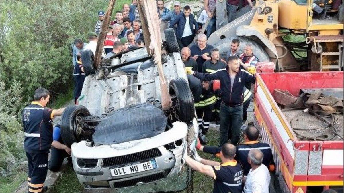Kayseri’nin Sarıoğlan ilçesinde, Kızılırmak Nehri’ne uçan otomobilde 3 kişi hayatını kaybetti. Otomobil ve cenazeler kurtarma ekiplerinin saatler süren çalışması sonucunda sudan çıkarıldı.Dün Sarıoğlan ilçesine bağlı Karaözü Mahallesi’nde bulunan Şahruh Köprüsü girişinde 38 DN 110 plakalı otomobil, sürücünün direksiyon hakimiyetini kaybetmesi sonucunda Kızılırmak Nehri’ne uçtu. Vatandaşların ihbarı sonrasında kurtarma ekiplerinin sevk edildiği bölgede, Turkuaz kurtarma ekibinin de katkısıyla çalışma başlatıldı.Saatler süren kurtarma çalışmaları sonrasında 40 yaşındaki Ahmet Akyüz, 33 yaşındaki Kadir Bedir ve 24 yaşındaki Şükrü Çam’ın cesetleri çıkarıldı. Hayatını kaybeden 3 kişinin cenazeleri otopsi için morga kaldırılırken, otomobil vinç yardımı ile nehirden çıkarıldı.Yetkililer, olayla ilgili olarak soruşturmanın başlatıldığını bildirdi.