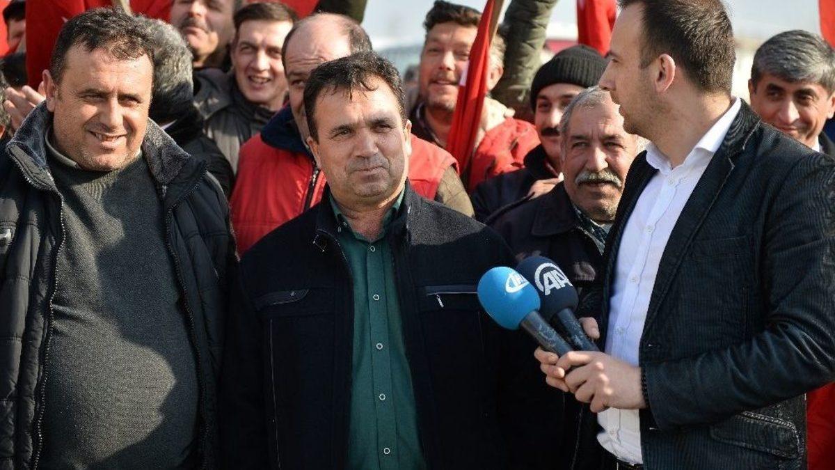 Sakarya’da belediyede çalışan 300 personel, Afrin’de yürütülen operasyona katılmak için askerlik şubesine gidip dilekçe verdi. Askerlik şubesinde görevli askerler gelen personele sıcak davranarak çay ikram etti.Türk Silahlı Kuvvetlerince (TSK), Suriye’nin kuzeybatısında Afrin bölgesinde, PKK/KCK/PYD-YPG ve DEAŞ’a mensup teröristleri etkisiz hale getirmek, dost ile kardeş bölge halkını baskı ve zulümden kurtarmak üzere başlatılan Zeytin Dalı Harekatı’na destekler sürüyor. Sakarya’da da Serdivan Belediyesi bünyesinde çalışan 300 personel, Afrin’de yürütülen operasyona katılmak için askerlik şubesine gidip dilekçe verdi.Dilekçe vermeden önce grup adına bir açıklama yapan Sezgin Kurt, “Suriye Afrin’de görev yapmakta olan kardeşlerimizin, askerlerimizin yanında olabilmek için bugün buraya askerlik şubesine gelmiş bulunmaktayız. Bizler Serdivan Belediyesi çalışanları olarak askerlerimizin yanlarındayız bilsinler. Allah birlik ve beraberliğimizi bozmasın. İslam dünyasının lideri olan Cumhurbaşkanımızın göstermiş olduğu yolda, gitmiş olduğu hedefe gözümüzü kırpmadan gideceğimizi bilmelerini isteriz. Allah yar ve yardımcımız olsun. 300 tane arkadaşımız ile geldik dilekçelerimiz elimizde. Bu soğuk havada bizler için çarpışan kahramanlarımızın yanında olmak için buradayız” dedi.Açıklama sonrası grup adına Sezgin Kurt dilekçeleri Adapazarı askerlik şubesi başkanına teslim etti. Daha sonra görevli askerler gelen personele çay ikram etti.