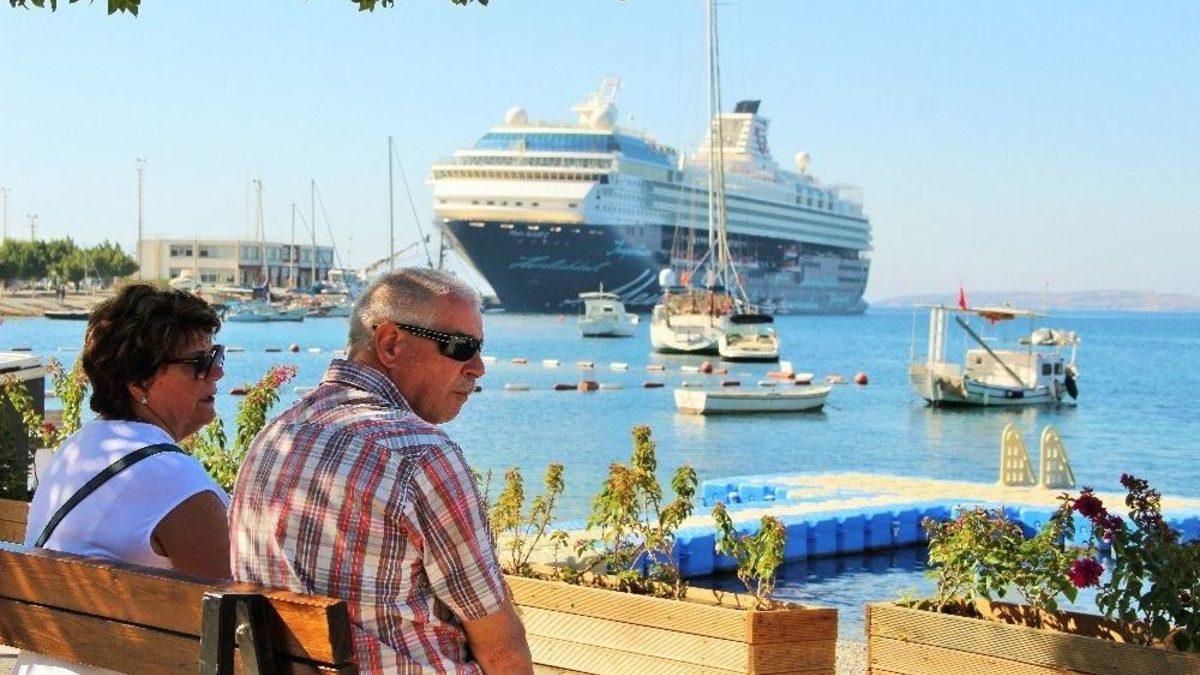 Muğla’nın Bodrum ilçesine son 7 ayda yolcu gemisi ile gelen turist sayısı 31 bine ulaştı. Bu yıl son seferini yapan ’Mein Schiff 2’ isimli yolcu gemisinden ise 2 bin 69 turistin gelmesi esnafın yüzünü güldürdü.Kurvaziyer turizmi sayesinde 7 ayda Bodrum’a 24 yolcu gemisinden 31 bin 639 turist geldi. Nisan ayından başlayan ve Ekim ayından biten Kurvaziyer turizminin son gemisi ise bugün sabah saatlerinde Bodrum gemi yanaşma iskelesine demir atı. Sezon boyunca 12 kez Bodrum limanına demir atan ’Mein Schiff 2’ isimli yolcu gemisi bu yılki son seferinde 2 bin 69 yolcu ve 822 personeli Bodrum’a getirdi.Esnafın yüzü güldüMalta bayraklı ’Mein Schiff 2’ isimli yolcu gemisinden inen turistler Bodrum çarşısını gezerek bol bol alışveriş yaptı. 264 metre uzunluğunda yolcu gemisi ile gelen turistlerinin çoğunluğu Alman turistten olduğu öğrenildi. Turizm sezonunun son günlerinde gelen yolcu gemisi ise esnafında yüzünü güldürdü. Bazı turistler ise denize girip güneşlenmeyi tercih ederken, bazıları tarihi ve turistlik bölgeleri de gezmeyi ihmal etmedi. Yunanistan’ın Mykonos Adası’ndan gelen geminin akşam saatlerinde İtalya’nın Catania şehrine gideceği öğrenildi.