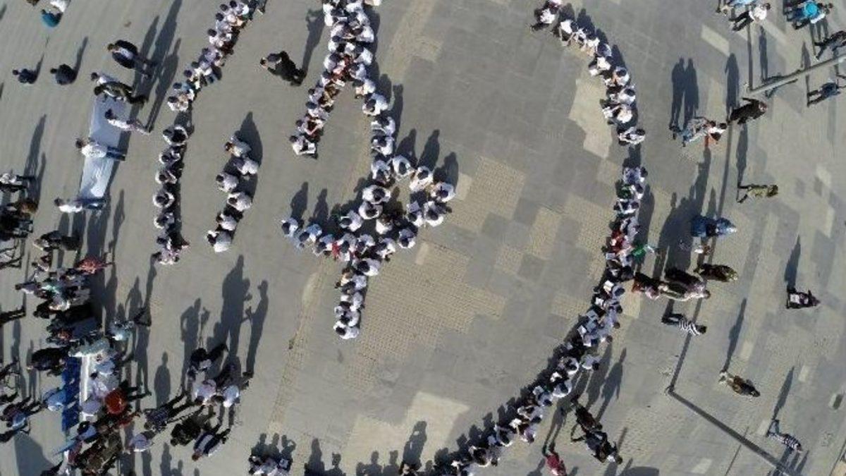 Bursa’da Hz. Muhammed’in hayatını anlatan kitabı okuyan 400 öğrencinin oluşturduğu ‘Muhammed’ lafzı havadan görüntülendi.Bursa Müftülüğü tarafından bir dizi sivil toplum kuruluşunun desteğiyle düzenlenen Kutlu Doğum etkinliğinde 400 çocuk, ‘Peygamberimiz Hazreti Muhammet Mustafa Sallallahü Aleyhi Vesellemin insanlarla ilişkileri’ adlı kitabı okudu. Kitap okuyan çocukların oluşturduğu ‘Muhammed’ lafzı da havadan görüntülendi.Bursa Müftülüğünün organizasyonunda Kent Meydanı’nda toplanan çocuklar müftülük görevlileri tarafından hazırlanan oturma düzeninde yere oturdu. Çocuklar, Bursa Müftüsü Prof. Dr. Mehmet Emin Ay’ın kaleme aldığı ‘Peygamberimizin hayatını anlatan insanlarla ilişkileri’ adlı kitabı okumaya başladı. Etkinlik, helikopter kamerayla havadan da görüntülendi. Çocukların oturma düzeniyle ‘Muhammed’ lafzı yazdı. Düzenlenen etkinlikle ilgili Bursa Müftülüğü Basın Koordinatörü Ali Haydar Yıldırım, “Şehrimizin tam da meydanında Efendiler Efendisi Mustafa Sallallahü Aleyhi Vesellemin, hayatını anlatan ‘Peygamberimizin insanlarla ilişkileri’ kitabımız var. Burada 400 öğrenci şehrin meydanında Efendimizin, hayatını okuyor. Bu etkinlikte amacımız Kutlu Doğum Haftası’nda farkındalık oluşturmak. Binlerce insan burada gençlerimizi görüyor, geleceklerine umutla bakıyor. İl Müftülüğü olarak bu organizasyonunu yaptık. 400 öğrenciyle birlikte Efendimizin hayatını okuyoruz. ‘Muhammet’ ismini çocuklarımız oluşturdular. Bunu da havadan görüntüledik” dedi.