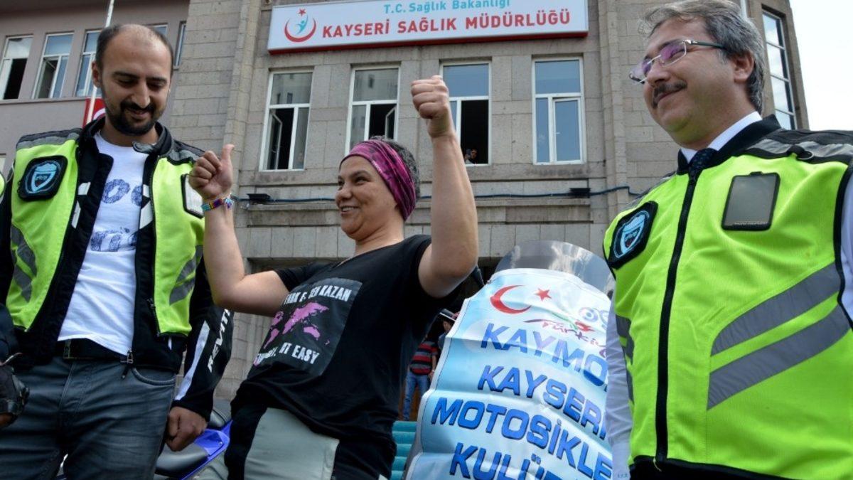 Meme Kanseri Farkındalığı için İstanbul’dan yola çıkan Gülçin Söğüt ile Hollandalı eşi ve Kayseri Motosiklet Kulübü üyelerini İl Sağlık Müdürlüğü’nün bahçesinde karşılayan Doç.Dr. Ali Ramazan Benli, "Bu gün Kayseri Motosikletçiler Kulübü Başkanı Mustafa Özdemir ve dünya turuna çıkmış olan Gülçin hanımı burada ağırlamaktayız. Bunu anlamlı kılan ise meme kanseri farkındalık gezisi" dedi.