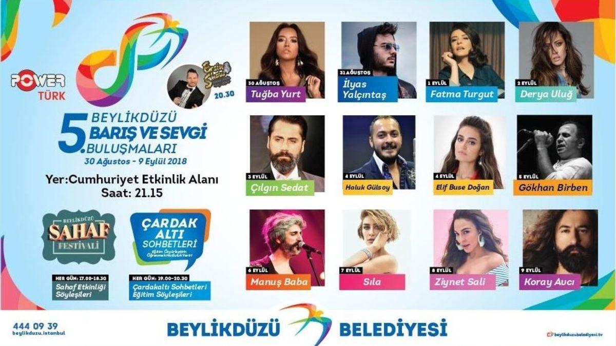 Beylikdüzü’nde, bu yıl 5’incisi düzenlenen Barış ve Sevgi Buluşmaları, 30 Ağustos Zafer Bayramı Kortej Yürüyüşü ve Tuğba Yurt konseri ile başlıyor. 30 Ağustos-9 Eylül tarihleri arasında Cumhuriyet Caddesi Etkinlik Alanı’nda yapılacak buluşmalarda, İstanbullular’ı yine dopdolu bir program bekliyor.Beylikdüzü Belediyesi 5. Barış ve Sevgi Buluşmaları, bu yıl da renkli ve dopdolu programıyla İstanbullular’a unutamayacakları bir festival yaşatacak. 5. Barış ve Sevgi Buluşmaları, 30 Ağustos - 9 Eylül tarihleri arasında Cumhuriyet Caddesi Etkinlik Alanı’nda gerçekleşecek. 30 Ağustos Zafer Bayramı Kortej Yürüyüşü ile başlayan 5. Barış ve Sevgi Buluşmaları’nın açılışı Tuğba Yurt konseriyle yapılacak. Geçen yıl “Adalet” temasıyla yapılan Çardak Altı Sohbetleri’nde bu kez tema “Eğitim” olacak. Çardak Altı Sohbetleri’nde; Sunay Akın’dan Ahmet Ümit’e, Levent Üzümcü’den Aydın Örs’e birbirinden değerli isimler, eğitim konusunu tüm boyutlarıyla konuşacak. Sahaf Festivali kapsamında bu yıl ikincisi düzenlenen Sahaf Söyleşileri’nde ise Buket Uzuner, Sevin Okyay, Ahmet Mümtaz Taylan, Murat Meriç gibi tanınmış isimlerin katılımıyla ‘Edebiyat ve Barış’tan Türkiye’de Polisiye Romana, Müzikli Türkiye Tarihi’nden Semavi Eyice ve Kütüphanesi’ne kadar birçok konu derinlemesine ele alınacak. Festivalde ayrıca; 3 - 8 Eylül tarihleri arasında, Streetball ve Tavla Turnuvaları gerçekleşecek. İstanbullular’ı, bu yıl beşincisi düzenlenecek Barış ve Sevgi Buluşmaları’na davet eden Beylikdüzü Belediye Başkanı Ekrem İmamoğlu, “Dünyanın her yerinde, hayatın her alanında barışın hakim olmasını dileyenlerin, sevginin değerine inananların kalbi 5 yıldır Beylikdüzü’nde atıyor. Gelin, siz de bu büyük mutluluğun bir parçası olun” dedi.Çardak Altı Sohbetleri’nin Teması “Eğitim”Sevgi ve Barış Buluşmaları’nda bu yıl Çardak Altı Sohbetleri’nin teması “Eğitim” Söyleşiler; 31 Ağustos - 9 Eylül tarihlerinde, 19.00 - 20.30 saatleri arasında, Yekta Kopan’ınmoderatörlüğünde yapılacak. Sinan Meydan, Ceylan Adanalı Kabadayıoğlu, Prof. Dr. Kemal Kocabaş, Sunay Akın, Ahmet Ümit, Levent Üzümcü, Cihat Şener, Tayfun Atay, Prof. Dr. Belma Tuğrul, Yılmaz Vural, Aydın Örs, Barış Kuyucu, Prof. Dr. Acar Baltaş, Deniz Bayramoğlu, Emin Çapa, Cem Mumcu, Feyza Altun, Ahmet Naç, Ali Poyrazoğlu, Prof. Dr. Betül Tanbay, Irmak Zileli ve Dilara Koçak’ın konuk olacağı Çardak Altı Sohbetleri’nde ‘Cumhuriyet Tarihinde Eğitim, Köy Enstitüleri ve Bugün; Eğitimde İsimler, Öyküler, Değerler; Çocuk ve Eğitim, Evrensel Eğitim; Yüksek Öğrenim, Meslek Seçimi, Liseye Giriş Sistemi Neden Çöktü; Beden Eğitimi, Sporda Eğitim; En Doğru Model Hangisi; Yurttaşlık Bilgisi, Eğitimde Kadın, Pozitif Ayrımcılık; Eğitimde Başarıya Giden Yol Nereden Geçiyor ve Eğitimde Matematiğin, Antropolojinin, Yazarlığın, Beslenmenin Rolü’ başlıkları altında eğitim konusu enine boyuna konuşulacak. Siyasi Liderlerle Sohbet etkinliği, bu yıl da tüm siyasi partilerin ilçe başkanları ve Beylikdüzü Belediye Başkanı Ekrem İmamoğlu’nun katılımıyla gerçekleşecek.Sahaf Söyleşileri’nde tanınmış yazarlar kitapseverlerle buluşacakFestival kapsamında bu yıl ikincisi düzenlenen Sahaf Söyleşileri ise 31 Ağustos - 9 Eylül tarihlerinde, 17.00 - 18.30 saatleri arasında yapılacak. Cengiz Özdemir, Ozan Sağsöz, Ceren Sungur, Mehmet Ö. Alkan, Ahmet Mümtaz Taylan, Hakan Günday, Emin Nedret İşli, Olgay Söyler, OsmantanErkır, Erol Üyepazarcı, Sevin Okyay, Murat Meriç, Galip Dursun, Işın Beril Tetik, Demokan Atasoy ve Buket Uzuner gibi isimlerin konuk olacağı Sahaf Söyleşileri’nde; ‘Yeni Medya-Eski Edebiyat, Tarih, Barış ve Türkiye’de Sol, Edebiyat ve Sinema, Semavi Eyice ve Kütüphanesi, Anadolu İnanç Tarihinde Destan Geleneği, Bir Koleksiyonerlik Hikayesi, Türkiye’de Polisiye Roman, Müzikli Türkiye Tarihi, Vampirler, Edebiyat ve Barış’ başlıkları altında keyifli sohbetler gerçekleştirilecek.Sportif etkinlikler, keyifli dakikalara sahne olacak5. Barış ve Sevgi Buluşmaları, sporseverler için hem çekişmeli hem de keyifli dakikalara sahne olacak. 3 - 8 Eylül tarihlerinde, saat 18.00 - 20.00 arasında yapılacak Streetball ve Tavla Turnuvaları, büyük çekişmeye sahne olacak. Festivalde ayrıca; 3 - 8 Eylül tarihlerinde, 18.00 - 20.00 saatleri arasında Mini Golf etkinliği; 3 Eylül’de ise 18.00 - 19.00 saatleri arasında Taebo Show, 19.00-20.00 saatleri arasında Zumba Show yapılacak.Sevilen sanatçılar sahne alacak5. Barış ve Sevgi Buluşmaları konser programlarında sevilen sanatçılar, Cumhuriyet Etkinlik Alanı’nda, her akşam 21.15’te, Beylikdüzü halkı ile buluşacak. İlk konser, Tuğba Yurt’un 30 Ağustos Zafer Bayramı konseri ile başlayacak. 30 Ağustos - 9 Eylül arası gerçekleşecek konserlerde ‘İlyas Yalçıntaş, Fatma Turgut, Derya Uluğ, Çılgın Sedat, Haluk Gülsoy, Elif Buse Doğan, Gökhan Birben, Manuş Baba, Sıla, Ziynet Sali’ gibi sevilen isimler sahne alacak. Festivalin finalini, 9 Eylül Pazar günü, Koray Avcı yapacak. İzmir’in Kurtuluşu’nun 96. Yıldönümü, Koray Avcı konseriyle coşku içinde kutlanacak.