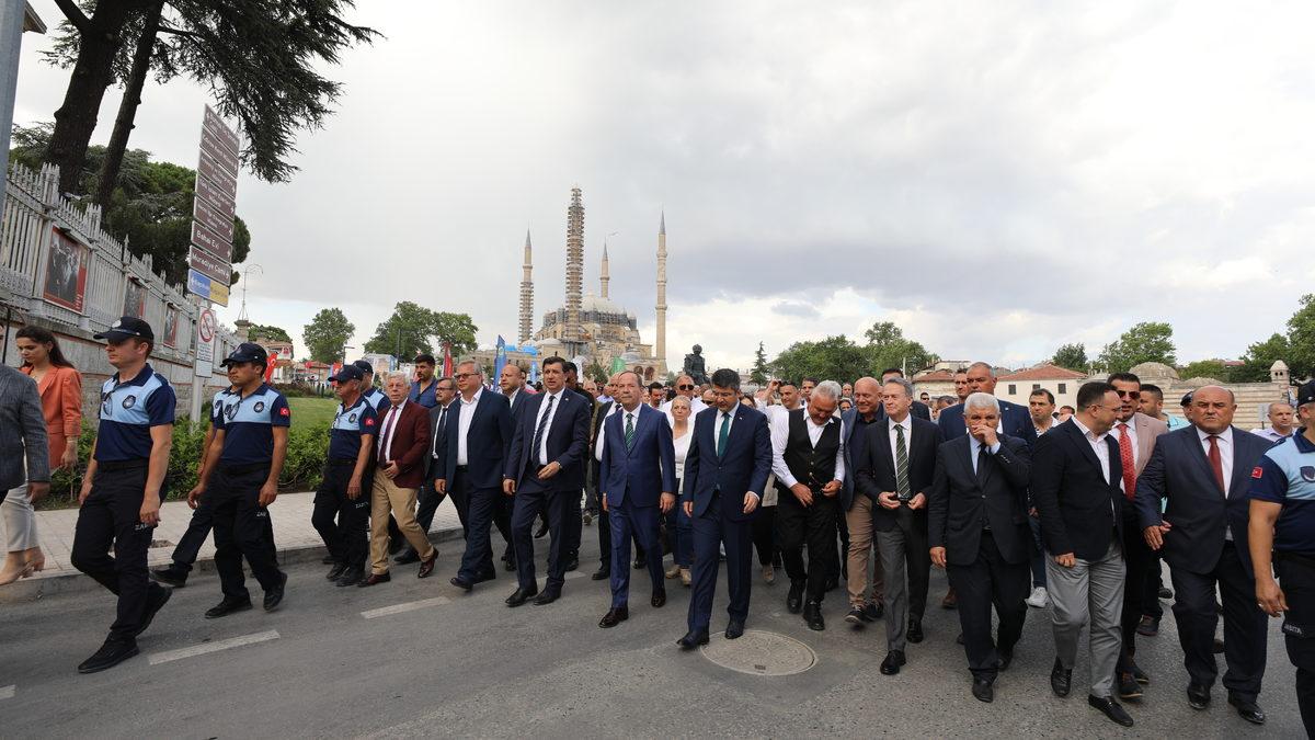Edirne Valisi Kürşat Kırbıyık, Edirne Belediye Başkanı Recep Gürkan ve Kırkpınar Güreş Ağası Seyfettin Selim'in de aralarında bulunduğu kortej, bando eşliğinde belediyeden Atatürk Anıtı'na kadar yürüdü.