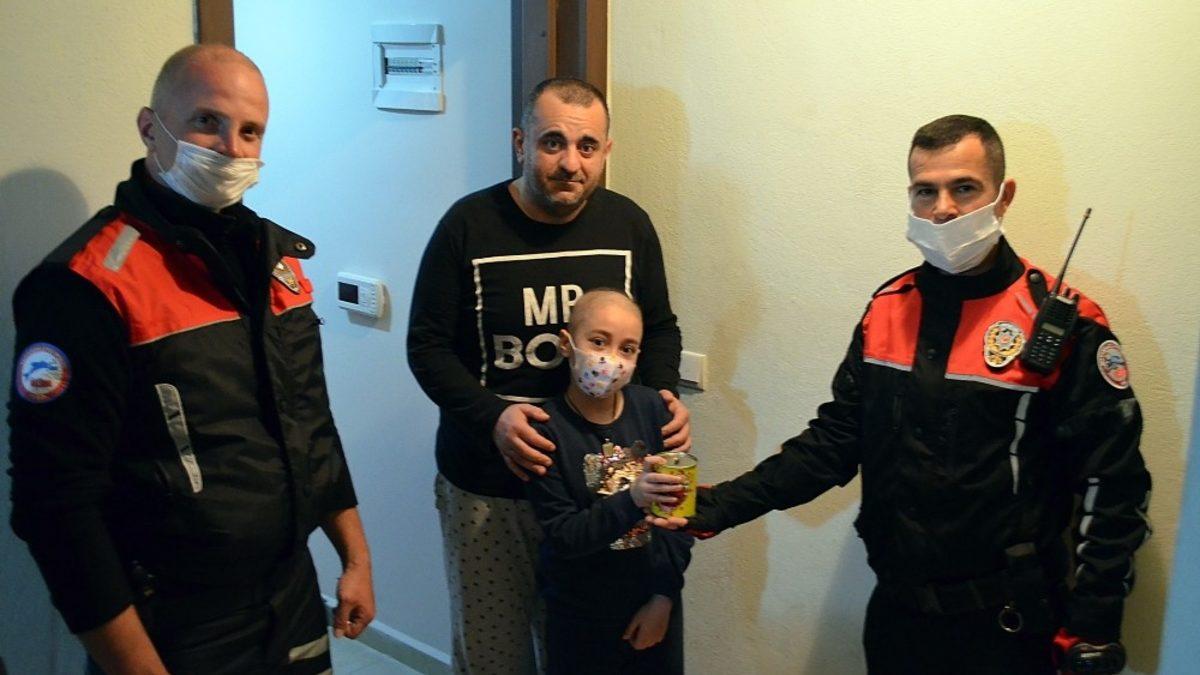 Baba Deniz Bademkıran ise “Kızım kendi isteğiyle kumbarasındaki paralarını, birikimlerini Milli Dayanışma kampanyasına bağışlamak istedi. Bunu bana söyledi. 155’i aradık, polis amcaları geldi ve bilgi istedik. Sizlere teşekkür ediyorum. Allah Devletimize ve milletimize zeval vermesin. Tüm sağlık çalışanlarına ve kolluk kuvvetlerine teşekkür ediyoruz. İnşallah bu belayı hep beraber atlatacağız. Kızım 9 Eylül Üniversitesi Onkoloji bölümünde kemoterapi görüyor. İnşallah o da hastalığını atlatacak” dedi.