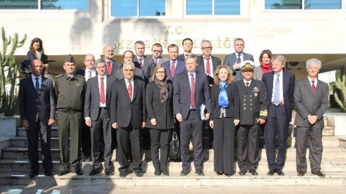 Avrupa Birliği (AB) büyükelçileri, bir dizi ziyaret ve toplantıya katılmak üzere Mersin’e geldi. AB Türkiye Delegasyonu Başkanı Christian Berger başkanlığında gerçekleştirilen ziyarete 16 büyükelçi katıldı.AB büyükelçilerinin Mersin’deki ilk durağı Mersin Valiliği oldu. Mersin Valisi Özdemir Çakacak’ın, Travel Turkey İzmir Fuarı’na katılmak üzere İzmir’de olması dolayısıyla AB Türkiye Delegasyonu Başkanı Christian Berger ve beraberindeki heyeti, sahil Valilik binası önünde Mersin Vali Vekili Cezmi Türk Göçer karşıladı. Valiliğe beyaz bir minibüsle gelen büyükelçilerle tek tek tokalaşan Göçer’e, Mersin İl Emniyet Müdürü Mehmet Şahne, İl Jandarma Komutanı Albay Hüseyin Kanat ve Sahil Güvenlik Akdeniz Bölge Komutanı Albay Fatih Erhan da eşlik etti. Basına kapalı gerçekleştirilen ziyaret öncesinde Vali Vekili Göçer ve AB büyükelçileri birlikte fotoğraf çektirdi.Berger ile Slovakya, Letonya, İrlanda, Polonya, Finlandiya, Avusturya, Hollanda, Litvanya, Fransa, Hırvatistan, İsveç, Portekiz, Estonya, İspanya ve Romanya büyükelçilerinden oluşan heyet, Valilik ziyaretinin ardından Mersin Büyükşehir Belediyesi’ne geçti. Doğrudan Büyükşehir Belediye binasına giren büyükelçilerin buradaki ziyareti de basına kapalı olarak gerçekleştirildi.AB büyükelçileri, Mersin’de gün boyunca çeşitli ziyaretler gerçekleştirecekler.
