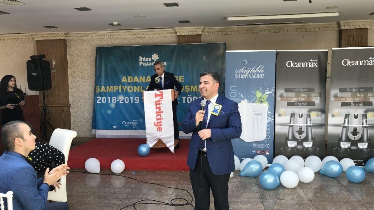 2018 yılı şampiyonlarının ödüllendirildiği toplantıda konuşan İhlas Pazarlama ve Türkiye Gazetesi Adana Bölge Müdürü Cumali Geleri, “Adana bölgemiz İhlas Pazarlama’nın en başarılı ve kurumsal bölgelerinden, 2018 yılını çok başarılı tamamladık. Bütçe hedeflerimizi, zorlu ekonomik şartlara rağmen yüzde yüz gerçekleştirdik. Başarımızda en büyük etken; arkadaşlarımızın birlik beraberlik-sevgi muhabbet içerisinde çok çalışıyor olmaları. İşine yüreğini katıyor, işinin kalbinde yaşıyor. Müşterilerimizin memnuniyeti ve teşekkürünü her şeyin üzerinde tutuyoruz. Müşterilerimiz bizlerin gerçek dostu ve velinimeti olduğunu hiç unutmuyoruz. Bizleri 50.yıllara taşıyan Müşterilerimizin memnuniyetidir’’ dedi.