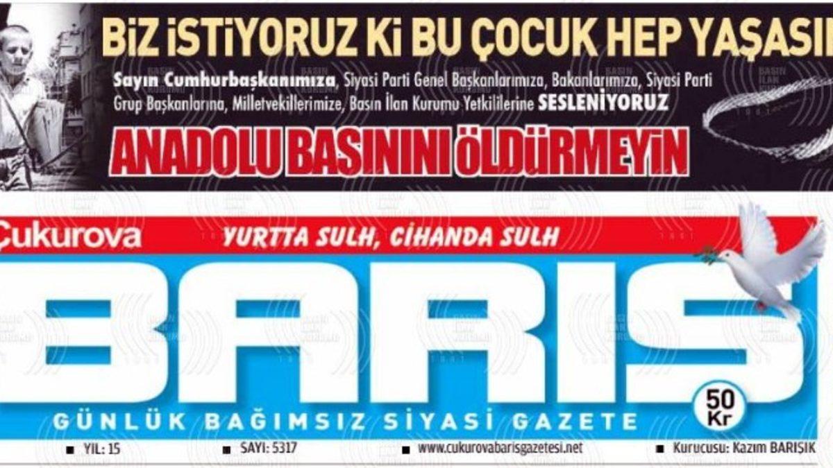 Geçtiğimiz günlerde açıklanan Yargı Reformu Paketi’nde yer alan resmi ilan statüsünde olan icra ilanlarının, yerel gazetelerde yayınlanma zorunluluğunun kaldırılmasına yönelik tepki, Adana’da da sürdü. Kentteki yerel gazeteler sürmanşetlerinden “Mahalli gazeteler yok olmasın” yazılı kuşak spotlarıyla yasa tasarısına tepki gösterdi.