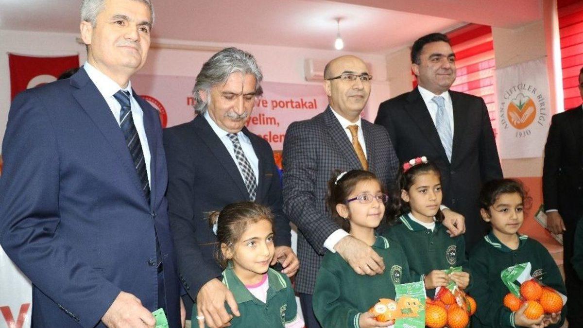 Adana’da narenciye ürünlerinin tüketim alışkanlığının küçük yaşlarda kazandırılması için İl Milli Eğitim Müdürlüğü, Gıda Tarım ve Hayvancılık İl Müdürlüğü ve Çiftçiler Birliği tarafından 5 okulda öğrencilere 6 ton narenciye dağıtılacak. Öğrencilere ilk narenciye dağıtımı, Vali Demirtaş’ın katılımıyla gerçekleştirildi.Adana Milli Eğitim Müdürlüğü, Gıda Tarım ve Hayvancılık İl Müdürlüğü ve Çiftçiler Birliği, ‘Sağlık için Narenciye Tüketelim’ projesini başlattı. Proje kapsamında Adana Valisi Mahmut Demirtaş, Yüreğir Kaymakamı Fatih Genel, İl Milli Eğitim Müdürü Turan Akpınar ve Çiftçiler Birliği Başkanı Mutlu Doğru’nun katılımı ile Yüreğir Yeşilbağlar İlkokulundaki bin 500 öğrenciye 1’er kiloluk paketler halinde narenciye dağıtıldı.Narenciye dağıtımında konuşan Vali Demirtaş, “Narenciye tüketmemiz lazım. Allah bu kente çok güzel bir toprak vermiş. Bu toprakta her şey büyüyor. Türkiye’deki narenciye üretiminin yüzde 27’si Adana’da üretiliyor. Narenciyenin faydaları saymakla bitmez. İnşallah bunları yiyip daha sağlıklı, başarılı olacaksınız” dedi.Demirtaş, öğrencilere gazlı içecekler içmemeleri konusunda da uyarılarda bulunarak, “Bundan sonra portakal suyu içeceğiz. Gazlı içecek içmek yok” diye konuştu.Konuşmaların ardından Vali Mahmut Demirtaş ile protokol üyeleri öğrencilere narenciyeleri dağıttı. Daha sonra sınıfları gezen Demirtaş, burada da öğrencilere kitap ve dergi dağıtıp sohbet etti. Proje kapsamında kentin kenar mahallelerinden seçilen 5 okula toplam 6 ton narenciye dağıtılacağı öğrenildi.