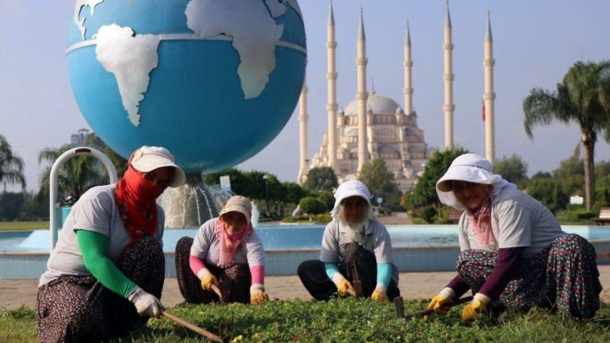 Adana Büyükşehir Belediyesi’nin peyzaj çalışmalarında görev yapan 60 kadın, kentin kavurucu sıcaklarında diktikleri çiçeklerle park, kavşak ve refüjleri renklendirirken, aile bütçesine de katkı sağlıyor. Çiçek dikiminde çalışan Nilüfer Akdoğan, işini severek yaptığı için zorlanmadığını fakat diktikleri çiçeklere başkalarının bastığını görünce canının yandığını ifade etti.Adana Büyükşehir Belediyesi Park ve Bahçeler Müdürlüğü, yaklaşık 2 milyon 201 bin kişinin yaşadığı kentte yazın gelmesiyle çiçek dikim çalışmalarını yoğunlaştırırken, mevsim normallerinin üzerinde seyreden hava sıcaklığı ise dikim ve çapa yapan kadın işçileri zorluyor.Günün erken saatlerinden itibaren şehrin çeşitli noktalarına dağılan 60 kadın, kavurucu sıcakta adeta arı gibi çalışarak kavşak, refüj ve parklara mevsimlik çiçek ve fidan dikiyor. Kentin çeşitli noktalarına diktikleri mevsimlik çiçeklerle kadınlar Adana’yı renklendirirken, aile bütçelerine de katkı sağlıyor.“Adana’yı güzelleştiriyoruz"3,5 yıldır çiçek dikiminde çalışan Nimet Mehli Fakıoğlu, Merkez Park’ta çiçek dikimi yaptığı sırada, gün boyu dikim ve çapa işlerini yaptıklarını, işlerinden büyük keyif aldıklarını söyledi. Fakıoğlu, “İhtiyaçtan dolayı eşime yardımcı olmak için çalışıyorum. Çocuklarımı okutuyorum, evimiz olsun diye eve yazıldım. Çalışmazsan hayat zor. Adana’nın sıcağı meşhur anlatılmaz, yaşayan biliyor. Aileme katkıda bulunuyorum işimi de severek yapıyorum. Adana’yı güzelleştiriyoruz” dedi.İşçilerden Fatma Kılınç da ekip olarak çiçek dikim işi yaptıkları için yorulduğunu hissetmeden çalıştığını belirtti. Kılınç, “Aileme katkıda bulunmak, Adana’mızı güzelleştirmek için bu işi yapıyorum. Adana’mız güzeldir ama sıcağı yakıyor. Yakıcı bir sıcağı var bugünlerde. Zorlanıyoruz ama çalışıyoruz yapacak bir şey yok. Çocuklarımız için çalışıyoruz” ifadelerini kullandı.“Çiçeklere basmayın"Yaklaşık 5 yıldır park ve bahçelerde çiçek diken Nilüfer Akdoğan, sıcaklarda çalışmanın zor olduğunu ama işini sevdiği için keyifli olduğunu anlattı. Bazı dönemlerde termometrelerin 50 dereceyi gösterdiği sıcaklıkta çalıştıklarını kaydeden Akdoğan, “Çocuklarım için, eşim için, kendim için çalışıyorum. Adana sıcakları çok etkiliyor bizi. Çok sıcak 50 dereceyi bulan bunaltıcı sıcaklarda çalışıyoruz. Ama işimizi seviyoruz ve güzel yaptığımıza inanıyoruz. Halkımıza daha güzel görünmesi için çalışıyoruz. Ve halkımızdan sadece çiçeklere basmamasını rica ediyoruz” diye konuştu.Zahide Açar isimli işçi ise ailesine bakmak için çalışmak zorunda olduğunu kaydetti.