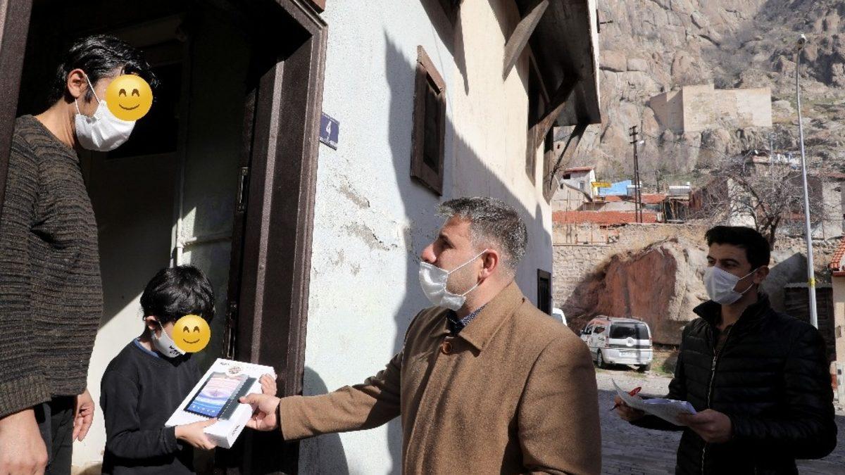 Alım işlemleri tamamlanan tabletler Afyonkarahisar Belediyesi Yardım Hizmetleri Birimi tarafından pandemi dolayısıyla öğrencilere bizzat evlerinden ziyaret edilerek teslim edildi. Afyonkarahisar Belediyesi’nin çocukların eğitimine büyük önem verdiğini kaydeden Başkan Zeybek, eğitime desteğin geleceğe destek olduğunu ifade ederek, “Cumhurbaşkanımız Recep Tayyip Erdoğan’ın başlattığı eğitime destek kampanyasına belediye olarak biz de ilk, orta ve lise öğrencilerimize burs, kırtasiye, kıyafet ve son olarak tablet vererek destek olduk. Binlerce başvuru arasında gerçek ihtiyacı sahibi olan öğrencilerimize tabletlerini teslim ettik” dedi.