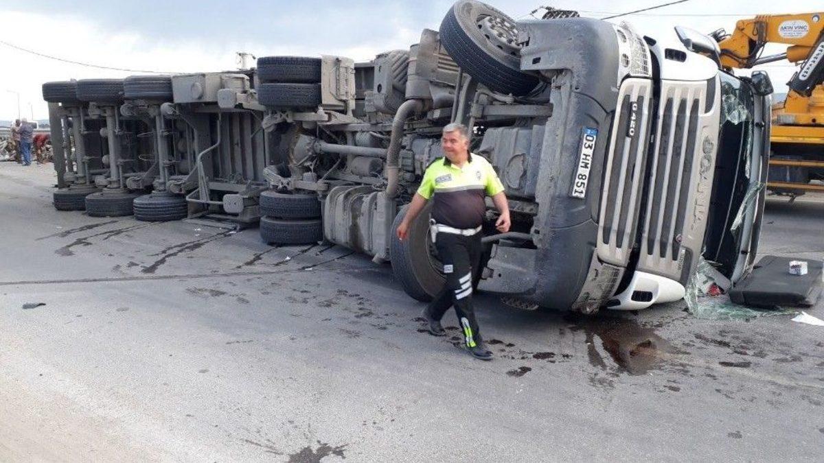Afyonkarahisar çevre yolunda hurda yüklü tırın devrilmesi sonucu bir kişi yaralandı. Kaza sonrası yol yaklaşık yarım saat trafiğe kaPAtıldı.Kaza, Afyonkarahisar çevre yolu Ankara Köprülü Kavşak’ta meydana geldi. Akşam saatlerinde Ankara istikametinden Afyonkarahisar Organize Sanayi Bölgesi İstikametine seyir eden Yusuf Soycan (37) idaresindeki 03 HM 851 plakalı hurda yüklü tır, köprülü kavşağa geldiği sırada virajı alamayarak devrildi. Kaza esnasından tırın yakınında herhangi bir aracın bulunmaması faciayı önlerken tır sürücüsü Yusuf Soycan yaralandı. Yaralı olay yerine gelen ambulansla Afyonkarahisar Devlet Hastanesi’ne kaldırılarak tedavi altına alındı.Kaza sonrası yol trafiğe kapanırken, uzun araç kuyruğu oluştu. Vinç yarımıyla tırın yolun ortasından çekilmesiyle yarım saatin ardından yol tekrara trafiğe açıldı.