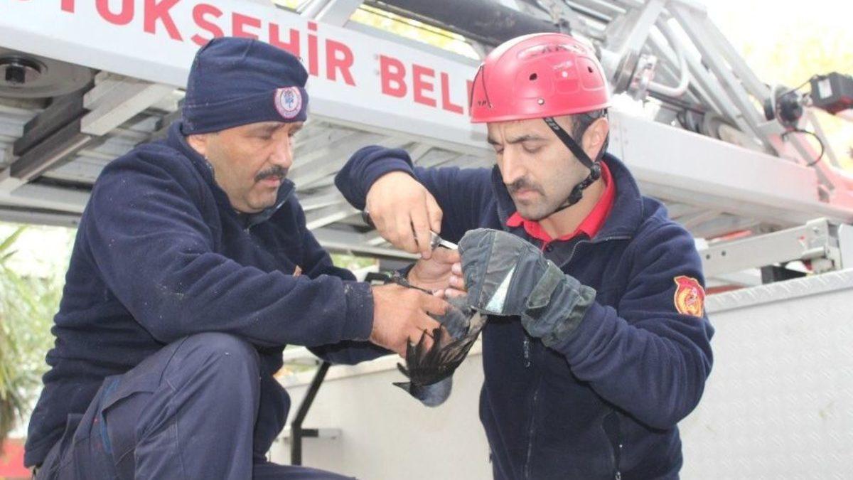 İzmit Hürriyet Caddesi’nde bir ağaca takılan kuş için itfaiye ekipleri seferber olurken meraklı vatandaşlar ise anı kaydetmek için telefonlarına sarıldı.İzmit Hürriyet Caddesi’nde ağaca takılan bir kuş Acısu Vergi Dairesi çalışanları tarafından fark edildi. Uzun bir süre takıldığı yerden kurtulamayan kuş için vatandaşlar tarafından İtfaiyeye haber veridi. Olaya yerine gelen itfaiye ekipleri kuşu takıldığı yerden kurtarmak için çalışma başlatırken meraklı vatandaşlar da o anları kaydetmek için telefonlarına sarıldı. Çırpınmaktan yorgun düşen kuş, İtfaiye ekipleri tarafından kurtarıldı. Baygın haldeki kuş itfaiye ekiplerince Kandıra Hayvan Barınağı’na götürüldü.