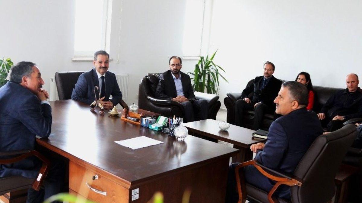 Ağrı İbrahim Çeçen Üniversitesi Rektörü Prof. Dr. Abdulhalik Karabulut Eleşkirt Celal Oruç Hayvansal Üretim Yüksekokulu, Eleşkirt Meslek Yüksekokulu, Eleşkirt Kaymakamlığı ve Eleşkirt Belediyesine ziyaretlerde bulundu.Ağrı İbrahim Çeçen Üniversitesi Rektörü Prof. Dr. Abdulhalik Karabulut, Rektör Yardımcısı Prof. Dr. Yusuf Çetin ve Rektör Danışmanı Yrd. Doç. Dr. İbrahim Özgül ile Eleşkirt Celal Oruç Hayvansal Üretim Yüksekokulu ve Eleşkirt Meslek Yüksekokulunu ziyaret etti. Celal Oruç Hayvansal Üretim Yüksekokulu Müdürü Prof. Dr. Yücel Ünal ve Meslek Yüksekokulu Müdürü Yrd. Doç. Dr. Fatih Kaya ile akademisyenlerle görüşen Prof. Dr. Karabulut, okullarda ve üretim çiftliğinde incelemelerde bulunarak, öğrencilerle sohbet etti. Önümüzdeki süreçte okullarla ilgili hayata geçirilmesi planlanan projelerin değerlendirildiği görüşmede; Celal Oruç Hayvansal Üretim Yüksekokulunun bölge için önemli bir eğitim merkezine dönüştürüleceğini söyleyen Prof. Dr. Karabulut, Ağrı ile Üniversite birlikteliğini sağlayabilmek için ilçelerimizde bulunan Yüksekokullarımıza da önemli sorumluluklar düştüğünü belirtti. Üniversitemiz ve ilçelerde bulunan okullarımızın tek vücut halinde aynı hedeflere odaklanması gerektiğinin altını çizen Prof. Dr. Karabulut, Ağrı İbrahim Çeçen Üniversitesinin Ağrı’nın lokomotifi olacağını sözlerine ekledi.Ağrı İbrahim Çeçen Üniversitesi Rektörü Prof. Dr. Abdulhalik Karabulut daha Eleşkirt Kaymakamı Recep Öztürk ve Eleşkirt Belediye Başkanı Sebahattin Sarı’ ya iade-i ziyarette bulundu.