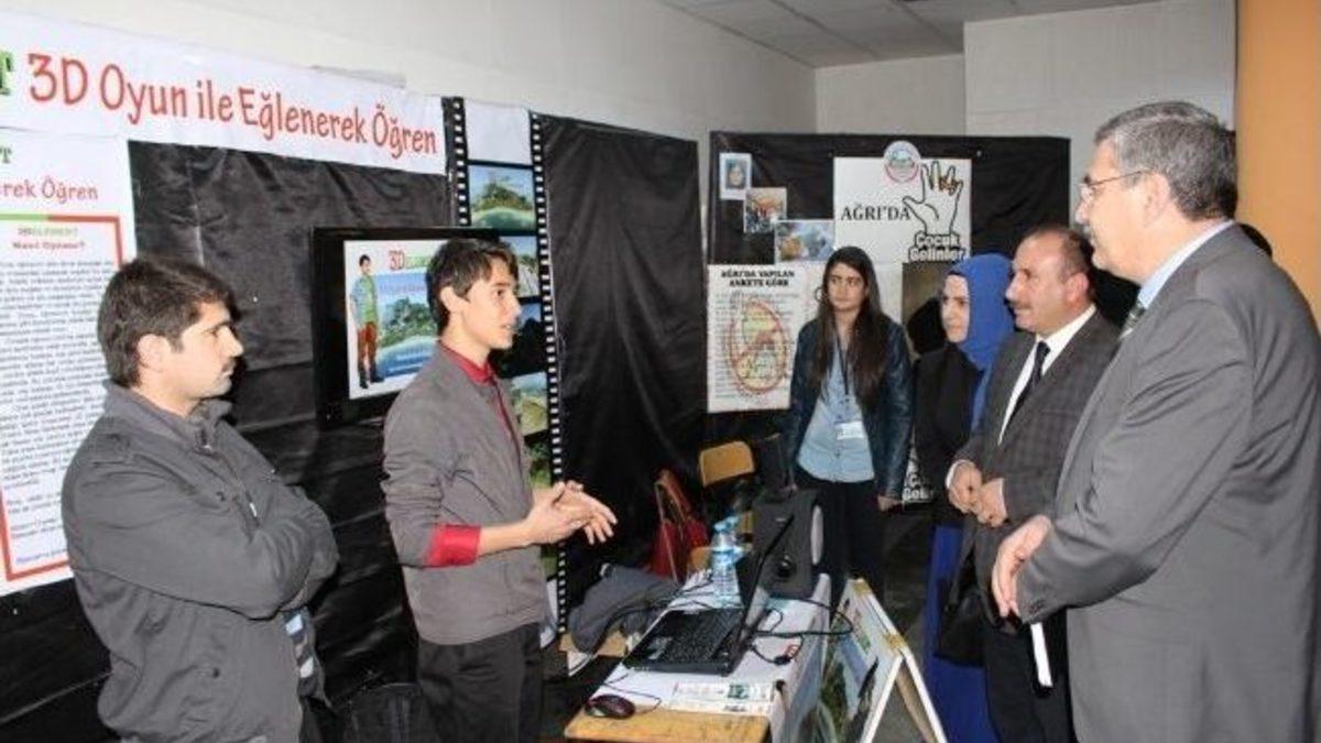 Ağrı İl Milli Eğitim Müdürü Hatem Dursun, TÜBİTAK 45. Ortaöğretim Öğrencileri Araştırma Projeleri Yarışması Van Bölge Sergisi'nde dereceye giren öğrencileri altınla ödüllendirdi.İl Milli Eğitim Müdürü Hatem Dursun ilk olarak, TÜBİTAK 45. Ortaöğretim Öğrencileri Araştırma Projeleri Yarışmasında Ağrı’dan Van Bölge sergisine katılmaya hak kazanan 10 projenin Halk Eğitim Merkezi Sergi Salonundaki sergisini ziyaret etti. Stantları gezen İl Milli Eğitim Müdürü Hatem Dursun, öğrencilerden projeleriyle ilgili bilgiler aldı. Daha sonra Halk Eğitim Merkezi Konferans salonunda düzenlenen ödül töreninde konuşan İl Milli Eğitim Müdürü Hatem Dursun, ” 17-20 Mart 2014 tarihleri arasında yapılan bölge sergisi sonucunda ilimiz dört birincilik ve bir üçüncülük derecesi elde etmiştir. Geleceğimizin teminatı olan siz gençlerimizi hayata hazırlarken hepimize büyük sorumluluklar düşmektedir. Sorgulayan, araştıran, çözüm üretebilen, edindiği bilgiyi hayata geçiren bilen bir nesil için projelerin, projelerle sorunlara çözüm üretmenin ne kadar mühim olduğu aşikardır. Bu nedenle ülkemizde TÜBİTAK gençlerimizin önünü açmakta çok ciddi adımlar atmaktadır. Bizler de ilimizde bu projelerin teşvik edilmesini çok önemsiyoruz. Bu nedenle bugün bölge sergisine katılan projeleri, lise öğrencilerimizin bilime teşviki için sergiledik ve katılan tüm öğrencilerimizi ödüllendiriyoruz. Amacımız bilgiyi yakalayan değil üreten toplum haline gelebilmek. İnşallah bu girişimlerle çağı yakalayan değil, çağı yönlendiren toplum haline geleceğiz. Bu programda emeği geçen tüm idareci öğretmen ve öğrencilerimize teşekkür ederiz. Başarılarının devamını dileriz”dedi.Daha sonra İl Milli Eğitim Müdürü Hatem Dursun, TÜBİTAK 45. Ortaöğretim Öğrencileri Araştırma Projeleri Van Bölge Yarışması’nda, dereceye giren öğrencileri altınla ödüllendirdi. Katılan tüm öğrencilere de hediye çeki verildi.17-20 Mart 2014 tarihinde yapılan TÜBİTAK 45. Ortaöğretim Öğrencileri Araştırma Projeleri Yarışması Van Bölge Sergisi'nde Ağrı Dağı Anadolu Lisesi’nin ‘Kadına Şiddette Fatalizm ve Dershanelerin Varlığı Eğitimde Fırsat Eşitliği midir Yoksa Eşitsizlik mi? Ağrı İli Örneği’, Türk Telekom Anadolu Öğretmen Lisesi’nin ‘3 D Oyun ile Eğlenerek Öğren’, Naci Gökçe Anadolu Lisesi’nin ‘Ağrı Dağı ve Çevresi Jeopark Olarak Değerlendirilmesi’ projeler birinci olurken, Ağrı Dağı Anadolu Lisesi’nin ‘Halkın Üniversiteye Bakışı ve Beklentileri’ projesi üçüncülüğü elde etmişti.