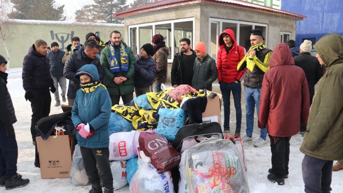 Ağrı Vali Lütfi Yiğenoğlu Stadyumu’nda oynan TFF 3. Lig 2. Grup Ağrı 1970 Spor - Fethiyespor maçının izleyen Ağrı 1970 Sporlu taraftarlar, maç sonrası Elazığ’daki depremden etkilenen vatandaşlar için atkı ve berelerinin yanında kışlık giysi topladı.