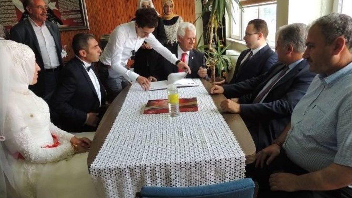 Ağrı Valisi Dr.Mehmet Tekinarslan, Eleşkirt Belediye Başkanı Sebahattin Sarı’nın oğlu Aytaç Sarı’nın nikah şahidi oldu.Ağrı Valisi Tekinarslan ile Eleşkirt Kaymakamı Murat Zadeleroğlu ve Yücekapı Belde Belediye Başkanı İlhami Zeyrek’in şahitliğini yaptığı nikah töreninde baba olan Belediye Başkanı Sebahattin Sarı ise nikahı kıydı. Vali Tekinarslan, nikah töreninde genç çiftlere uzun evliliğin sırları ile ilgili en önemli bilgiler verirekn saygı ve hoşgörü olduğunu ifade ederek genç çiftlerden birbirlerinin ufak tefek kusurlarını görmemeleri gerektiğini söyledi.vali Tekinarslan, nikah cüzdanını gelin hanıma takdim ederken ailesine, memleketine, milletine faydalı evlatlar yetiştirmeleri konusunda tavsiyede bulundu. Evli çiftlerin "birbirinizi eş olarak kabul ediyor musunuz" sorusuna çiftlerden alçak sesle cevap gelmesi üzerine devreye giren Ak Parti İlçe Başkanı Aytekin Arslan, bölgemizin en güzel geleneklerinden biri olan büyüklerin yanında konuşmama geleneğine duyulan saygıdan dolayı evli çiftlerin sesinin çıkmadığı açıklamasında bulundu.Eleşkirt Belediye Başkanı Sebahattin Sarı,misafirler huzurunda "Sayın Valimize bu mutlu günümüzde bizleri yalnız bırakmayarak onurlandırıp nikah şahitliği yaparak bizleri yücelttiği için kendisine derin şükranlarımı sunuyorum" dedi.Nikah töreni evli çiftle hatıra fotoğrafı çekimi ile son buldu.